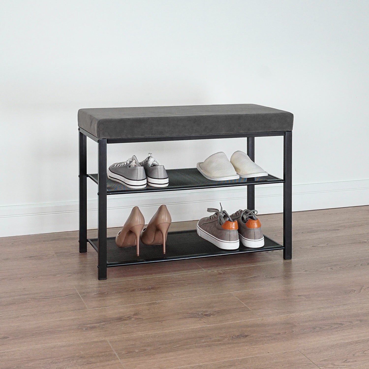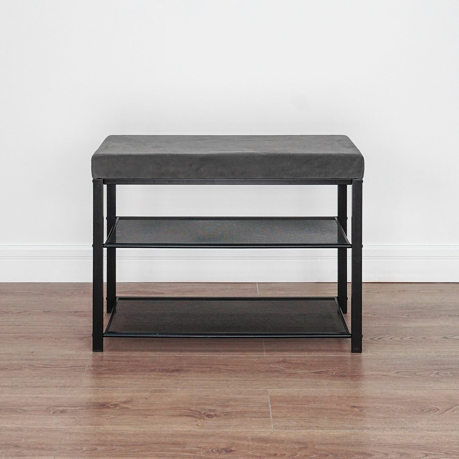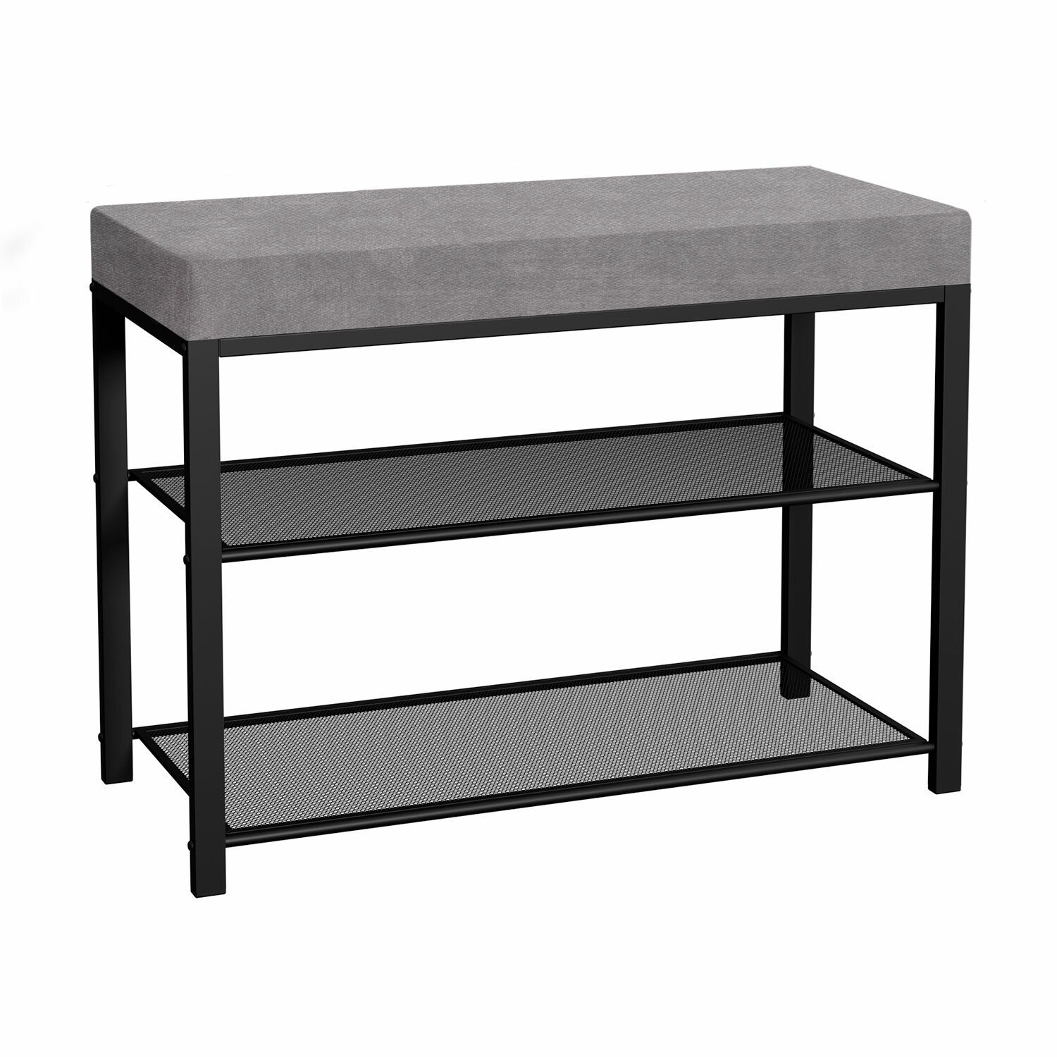 Банкетка для обуви "Торонто-23S", 670х300х490 мм, 2 полки, металл/ткань, черная/серая, БТ23СЧС