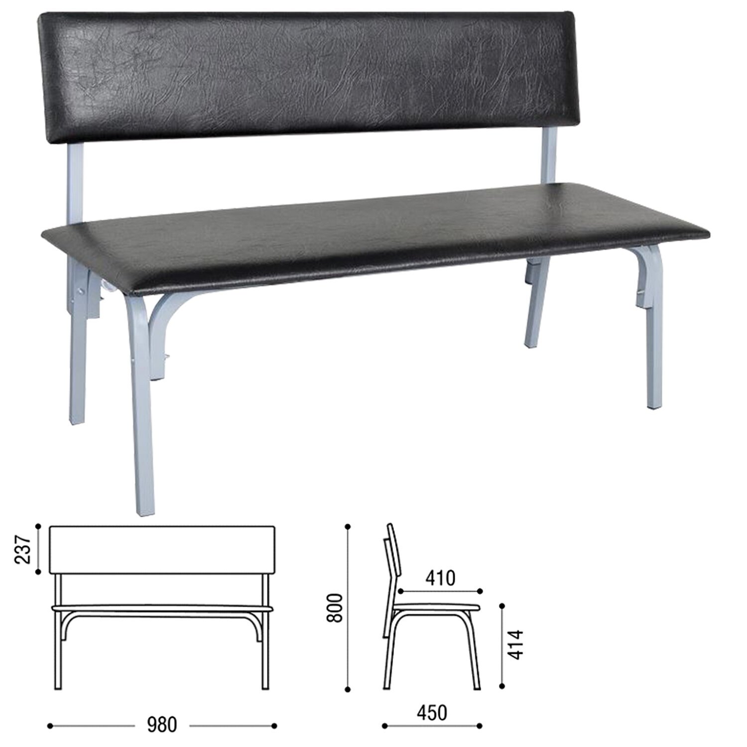 Банкетка со спинкой "Астрид", 1200х450х800 мм, серый каркас, кожзам черный