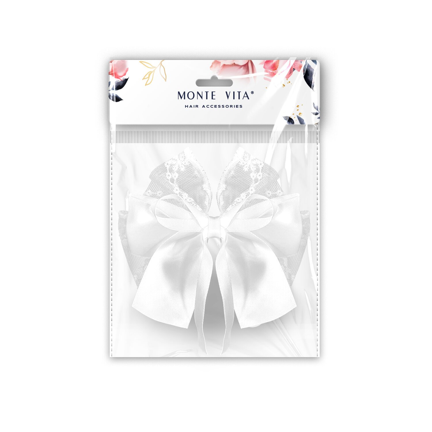 Бант для волос на заколке, 17х15 см, белый, MONTE VITA (МОНТЕ ВИТА), 458844