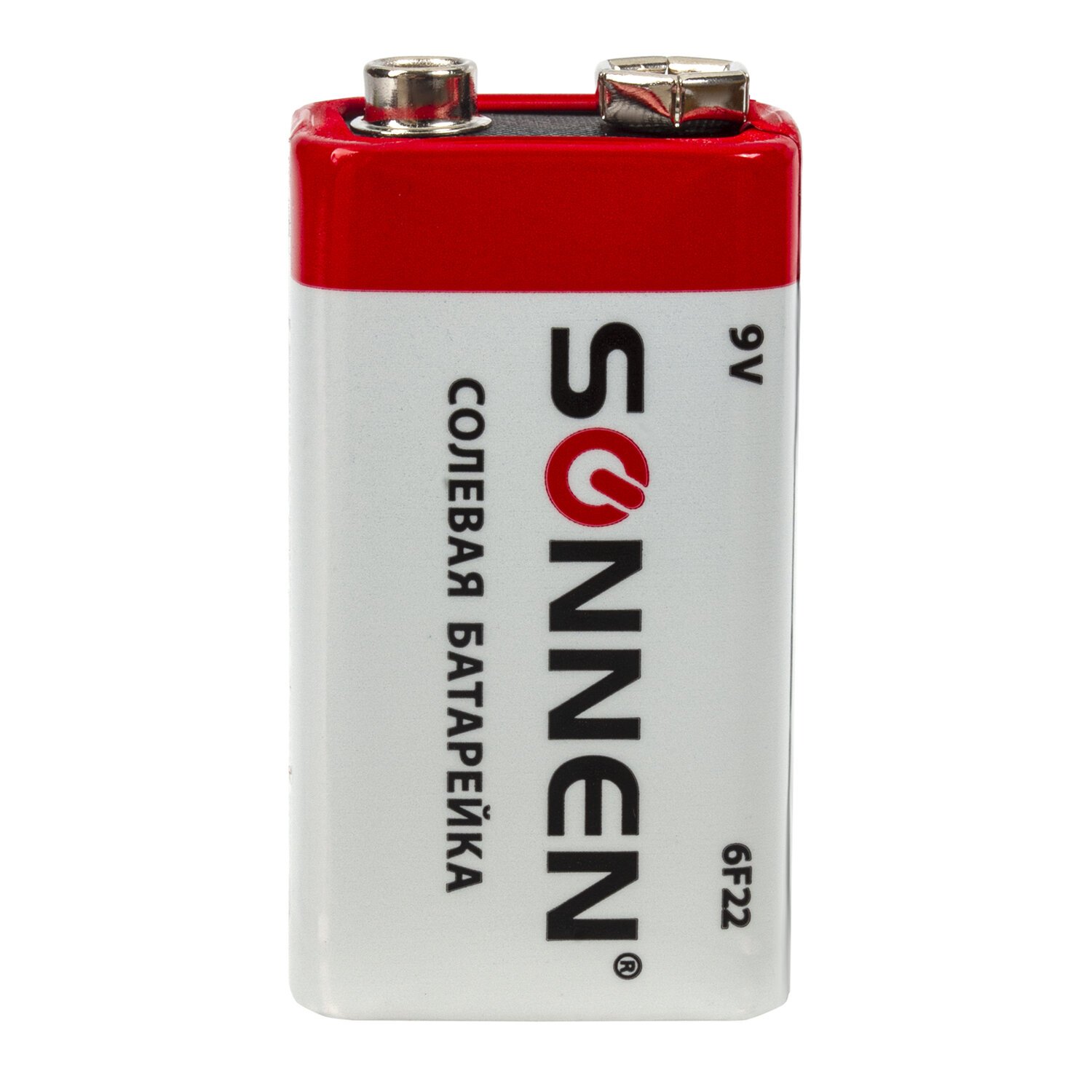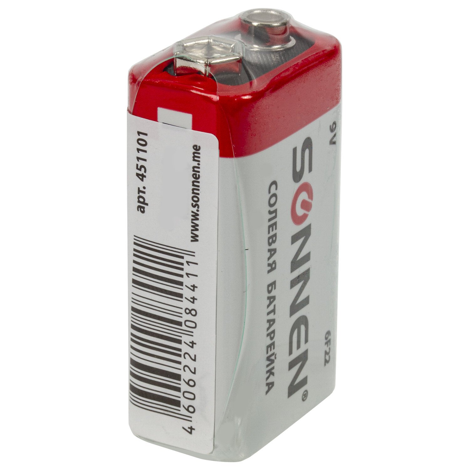 Батарейка SONNEN, Крона (6R61, 6F22, 1604), солевая, 1 шт., в пленке, 451101