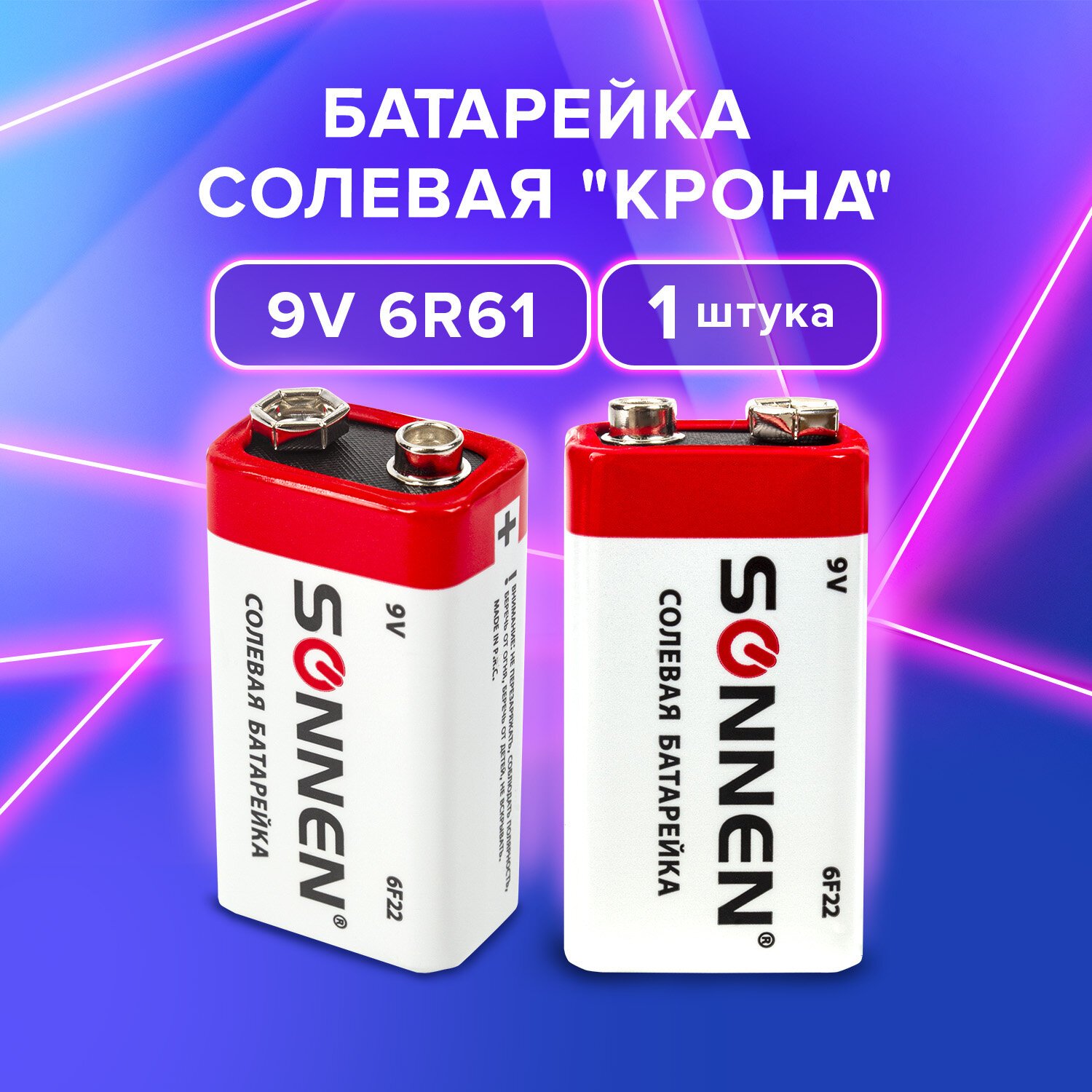 Батарейка SONNEN Alkaline, Крона (6LR61, 6LF22, 1604A), алкалиновая, 1 шт., блистер, 451092