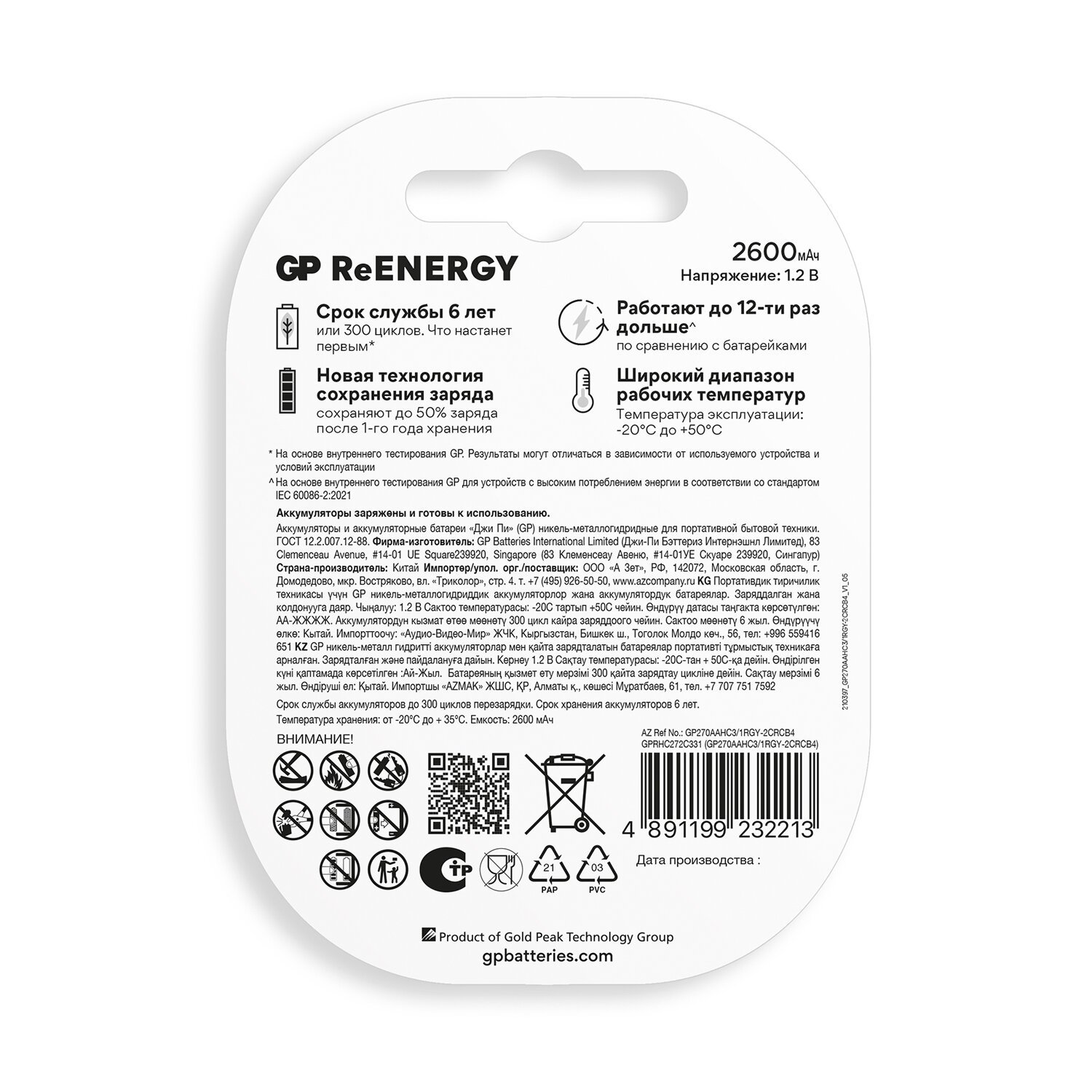 • Комплект GP 270AAHC31RGY-2CRCB4 в блистерной упаковке – это выгодное предложение: четыре аккумулятора по цене трех, что позволяет дополнительно сэкономить.