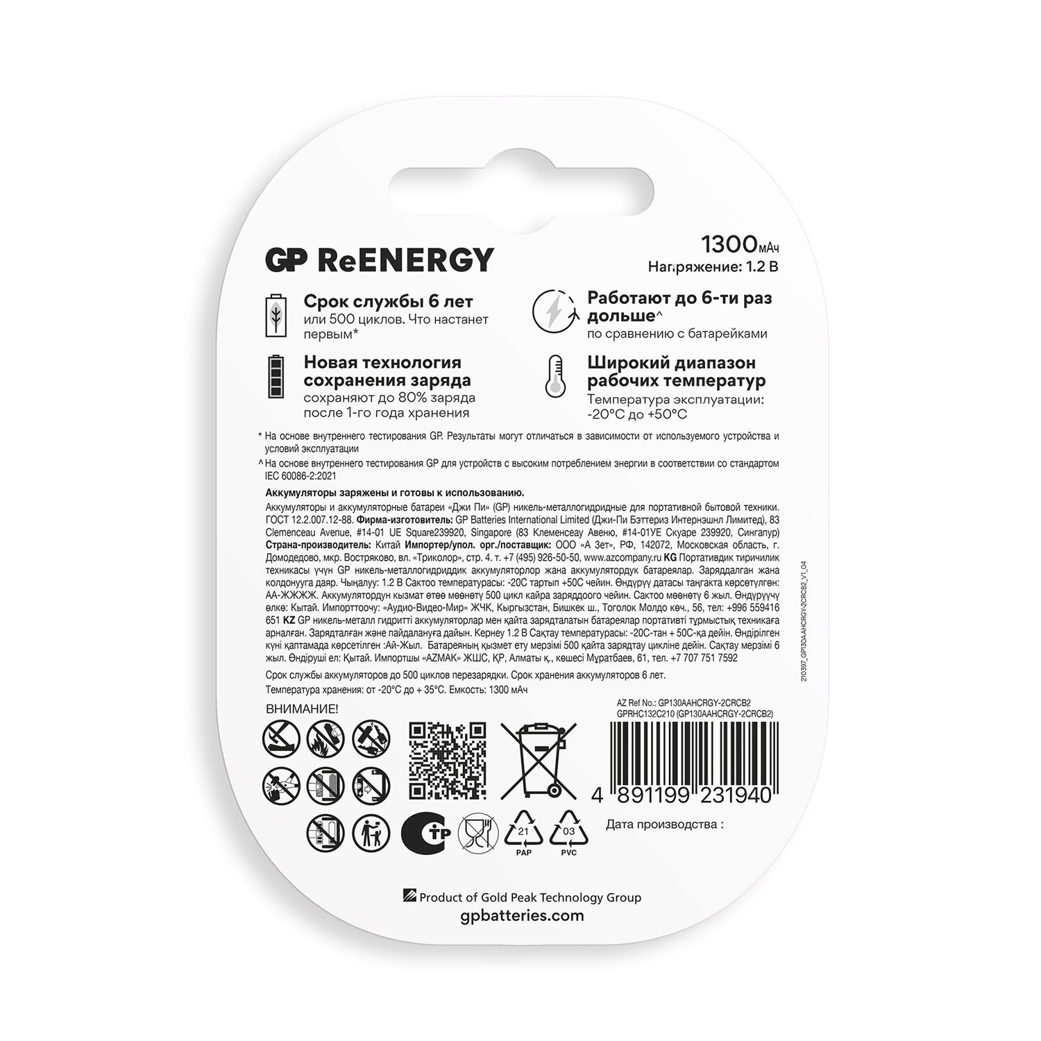 • Никель-металлогидридные аккумуляторы GP отличаются долгим сроком службы, стабильной работой в широком температурном диапазоне и способны выдерживать до 500 циклов зарядки. Они подходят для различных энергоемких портативных устройств, таких как игровые консоли, фонарики, MP3-плееры, пульты дистанционного управления, часы, компьютерные мыши и клавиатуры, фотоаппараты и другие гаджеты.