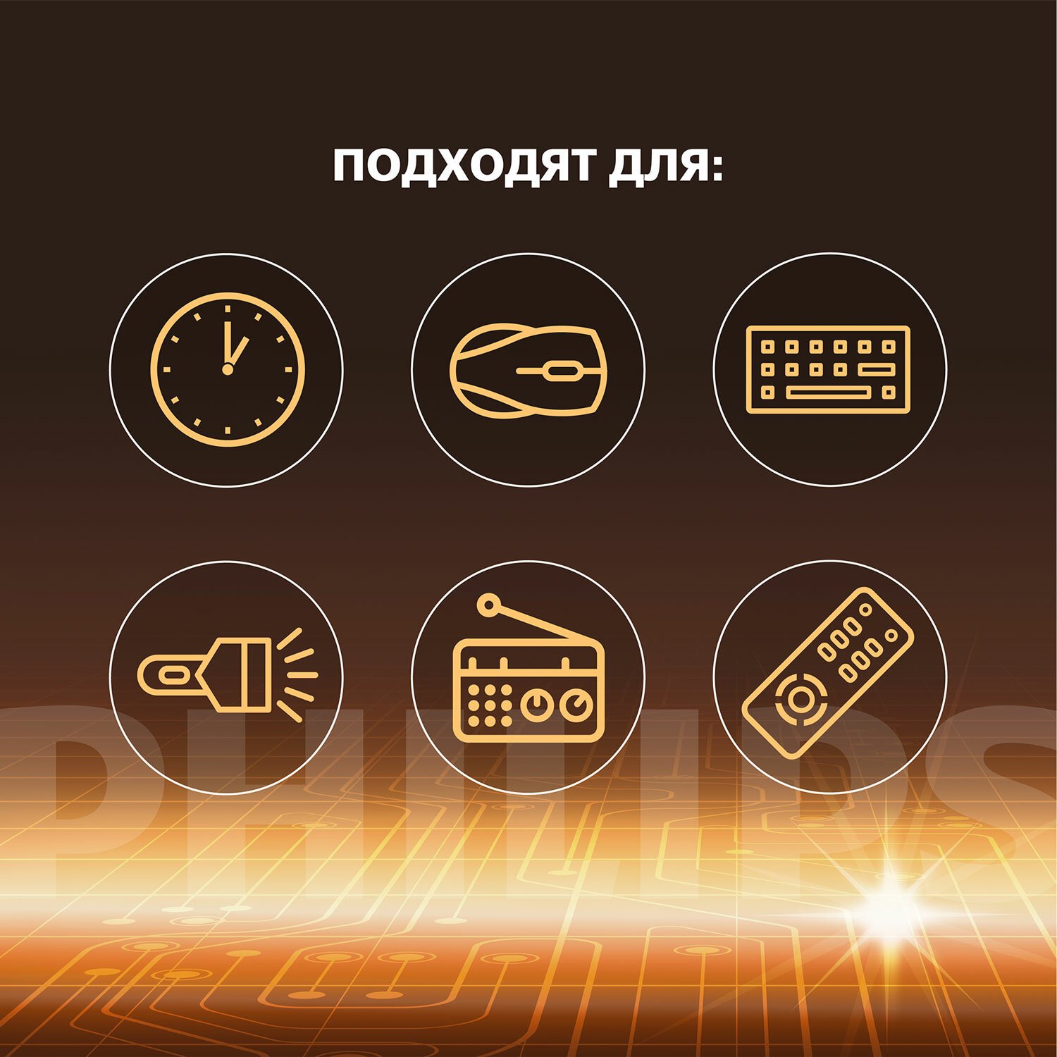 Щелочная технология для устройств с высоким энергопотреблением. Долговечные и надежные элементы питания для повседневных устройств, таких как часы и радиоприемники. Базовые щелочные батареи Philips обеспечивают максимальное качество для стандартных задач.