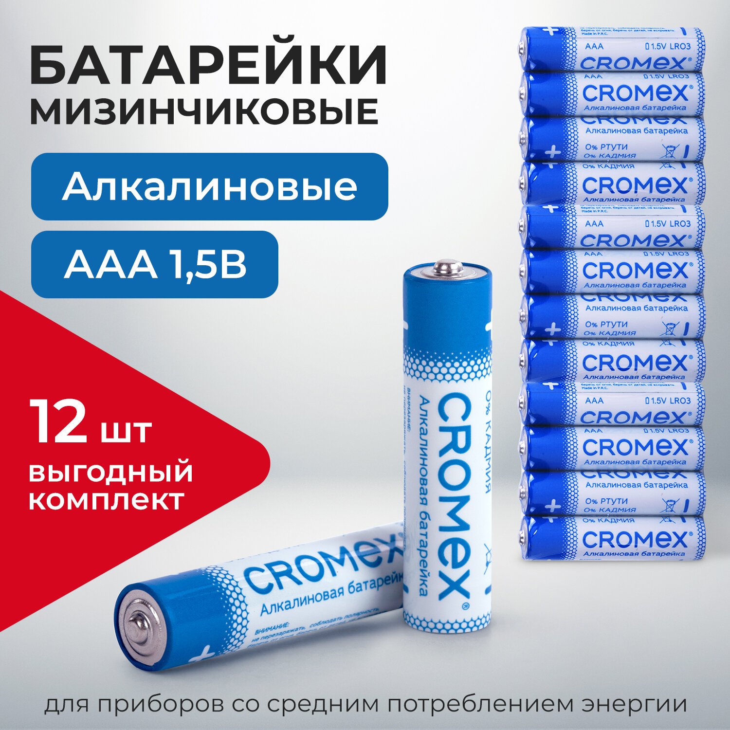 Батарейки алкалиновые "мизинчиковые" КОМПЛЕКТ 12 шт., CROMEX Alkaline, AAA (LR03, 24A), спайка, 456259