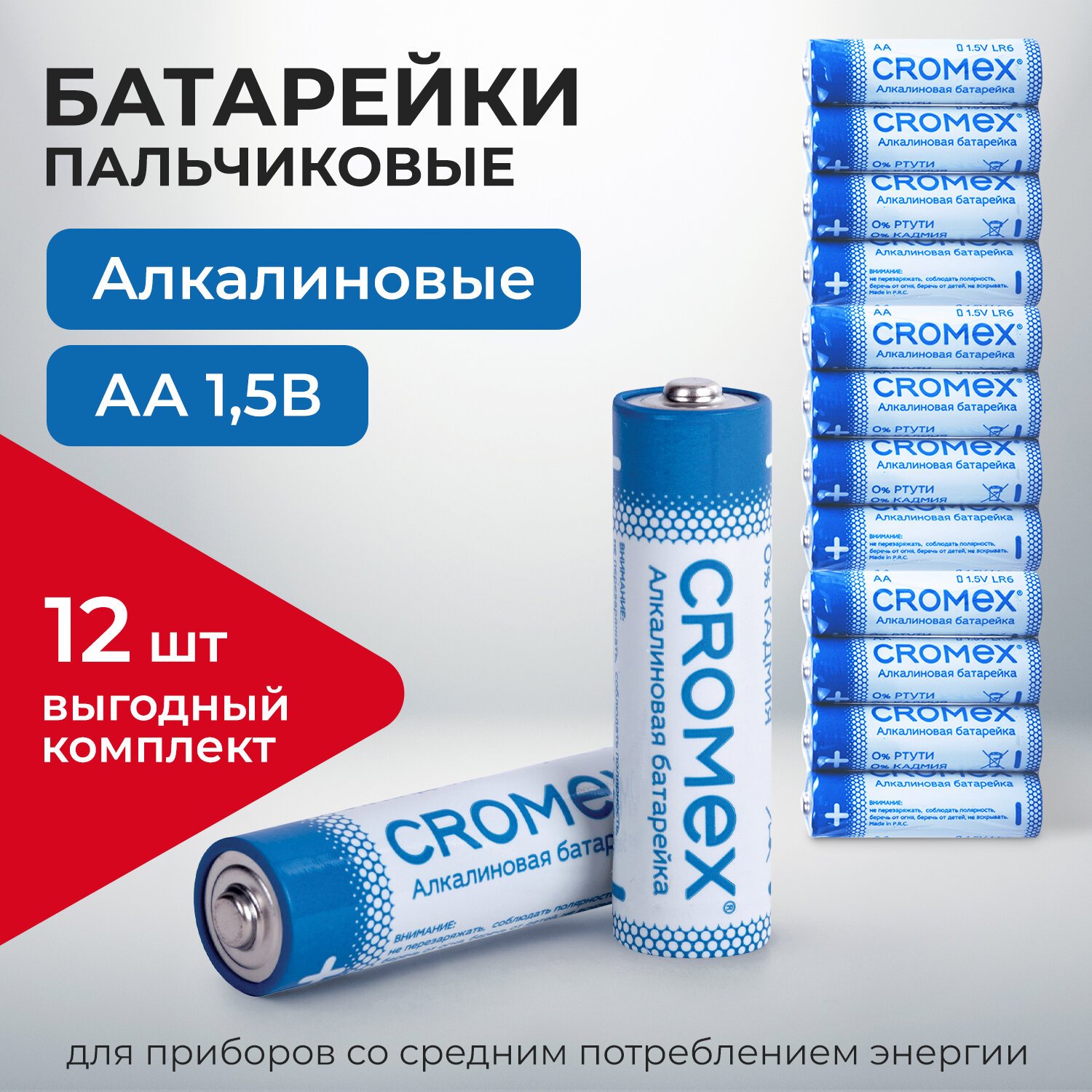 Батарейки алкалиновые "пальчиковые" КОМПЛЕКТ 12 шт., CROMEX Alkaline, AA (LR6,15A), спайка, 456258