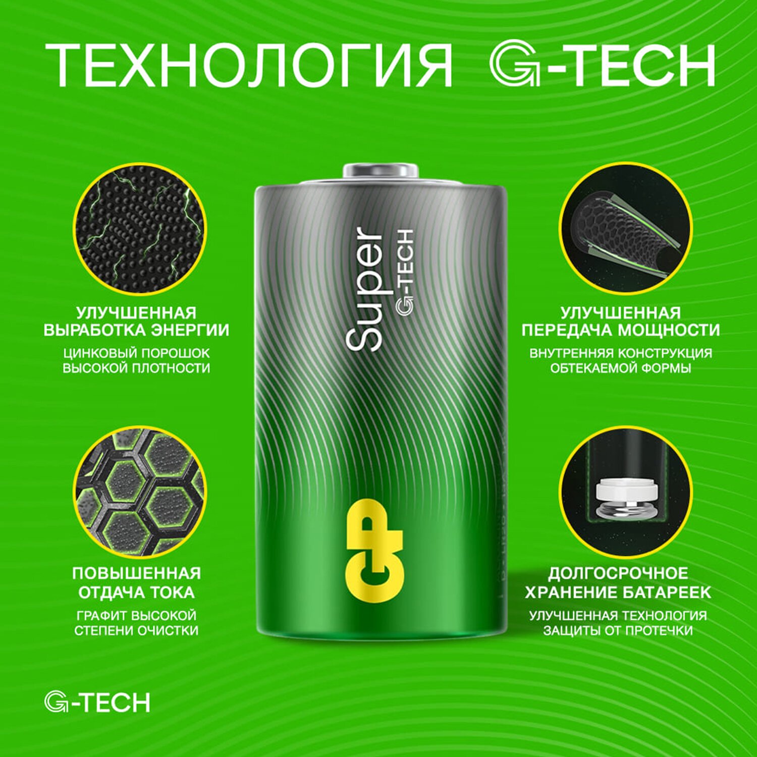 Алкалиновые батарейки GP размера D увеличенной продолжительности работы идеально подходят для приборов с высоким потреблением энергии, таких как механизированные игрушки, фонарики, портативные игровые консоли, пульты дистанционного управления.