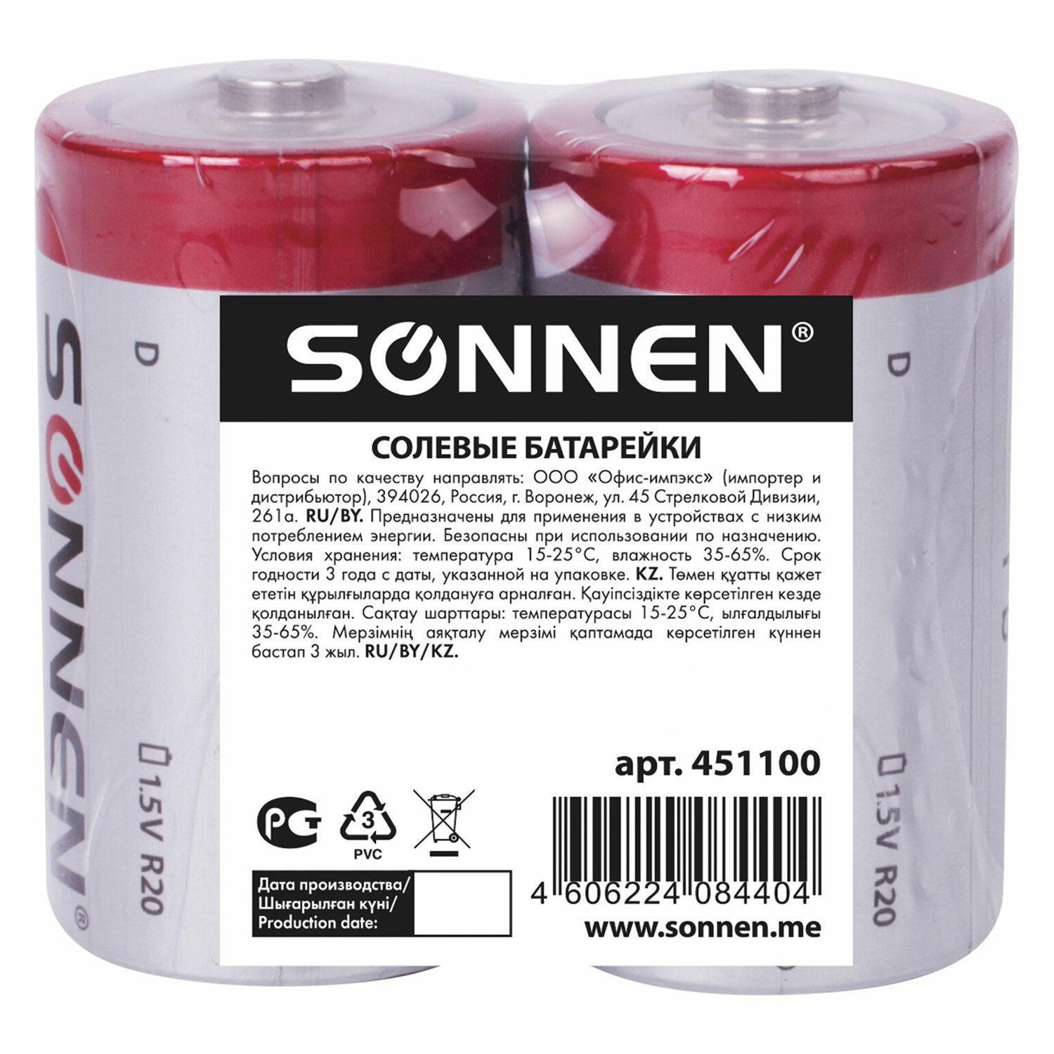 Солевые батарейки SONNEN типоразмера D идеально подходят для приборов с низким потреблением энергии. Рекомендуется использовать в электронных часах.