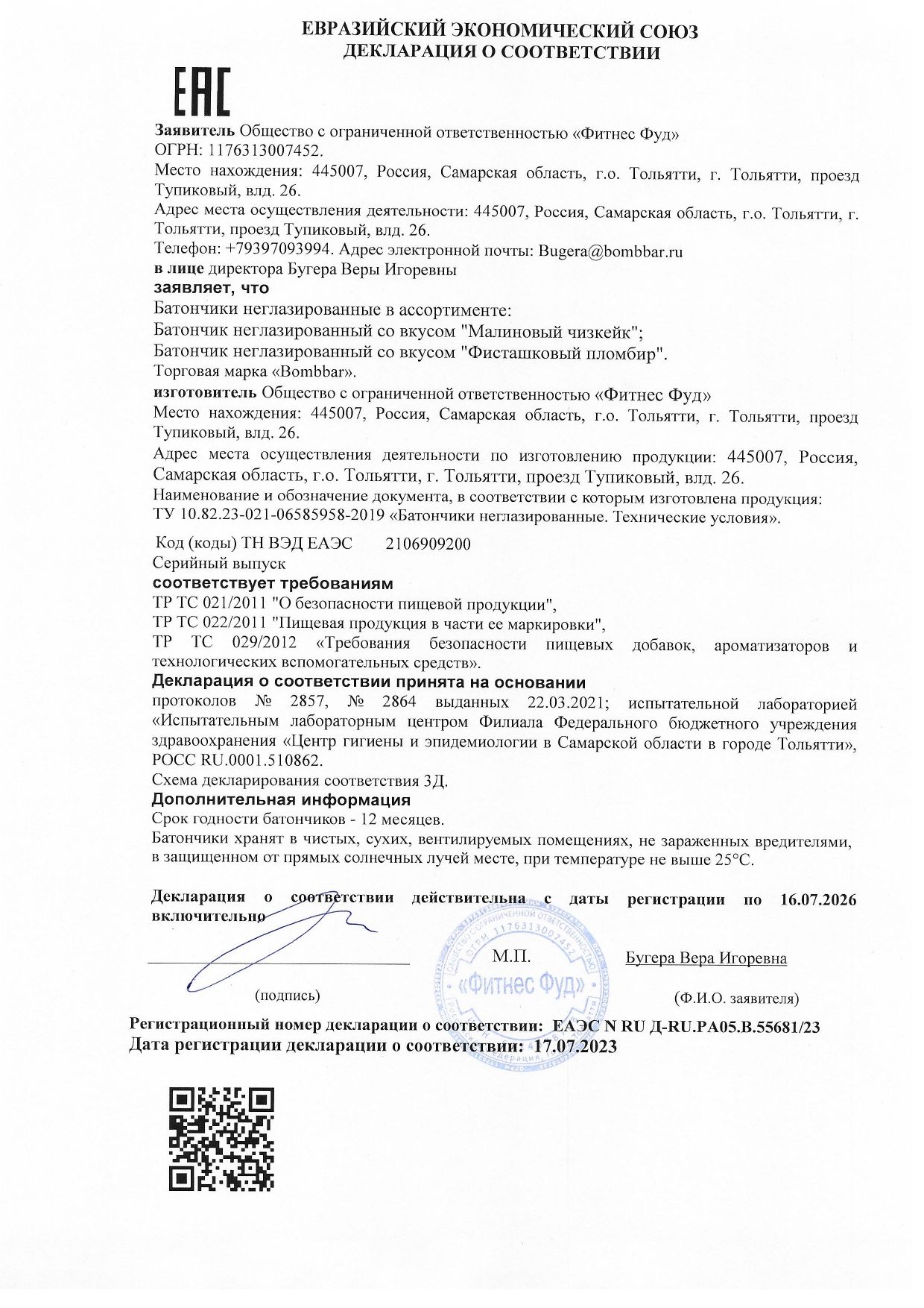 Мечтаете о нежном чизкейке, но следите за фигурой? Bombbar воплотил этот вкус в формате полезного перекуса. Внутри — 20 грамм высококачественного белка, натуральные ягоды и море пользы. Никакого сахара, глазури — только чистый состав для ваших достижений!