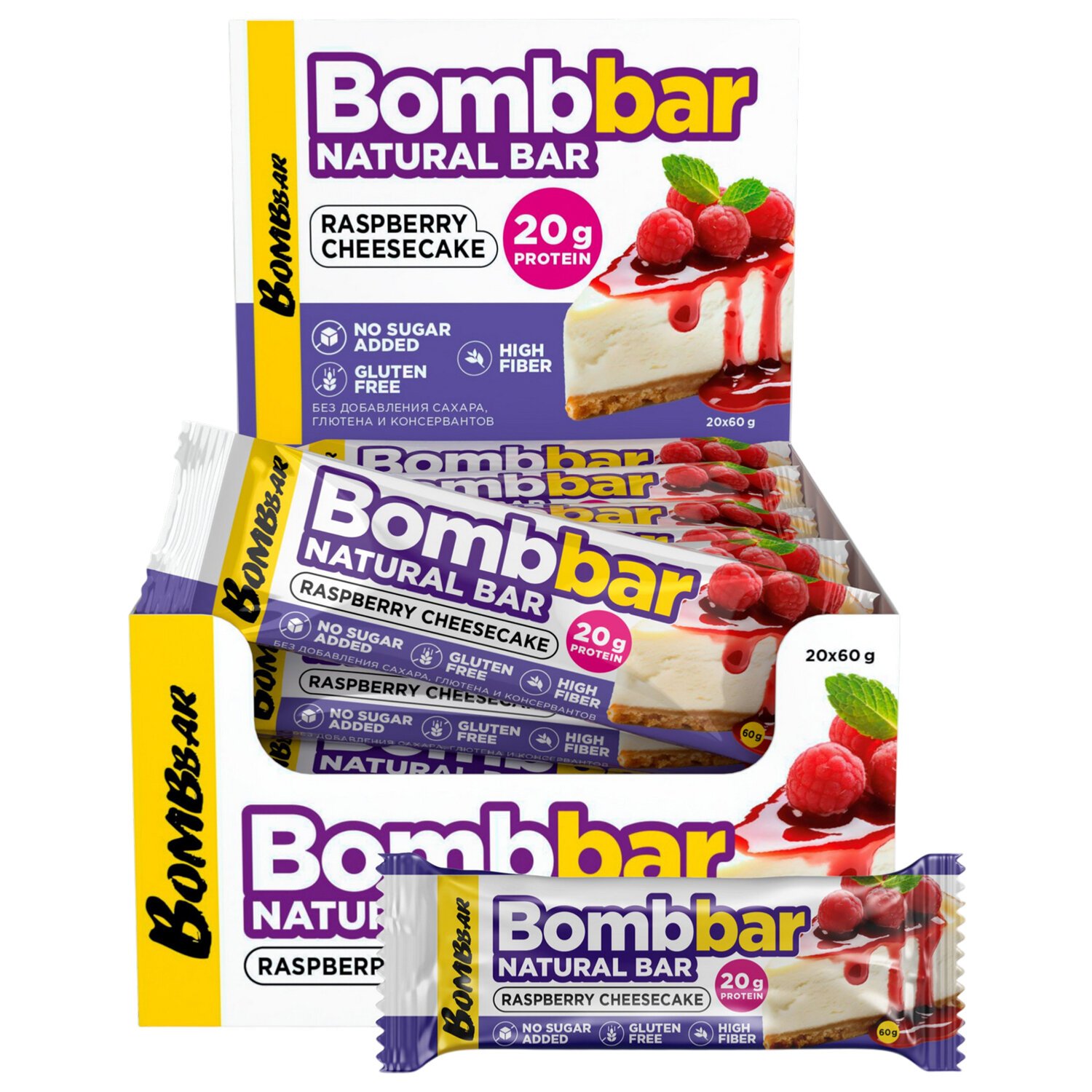 Батончик BOMBBAR "Малиновый чизкейк" без сахара 60 г, шоу-бокс, ББР469