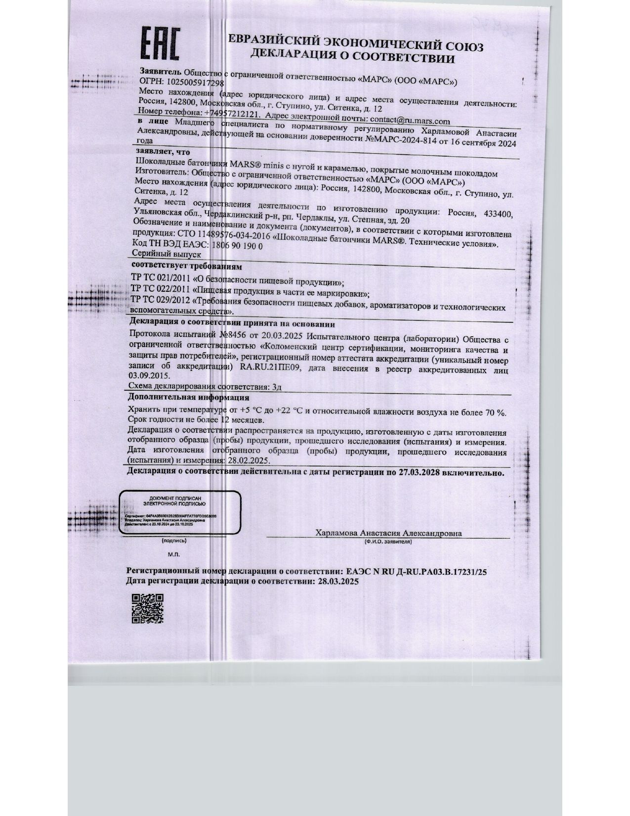 | Фирма-производитель | МАРС |