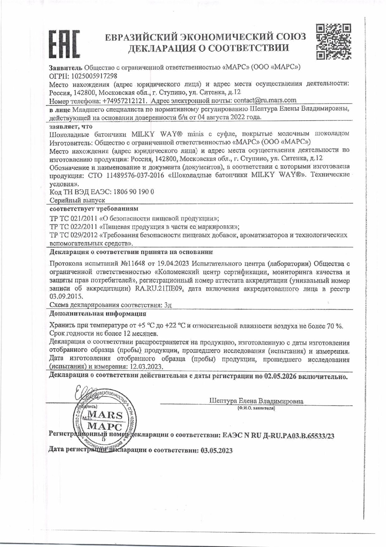 | Фирма-производитель | МАРС |