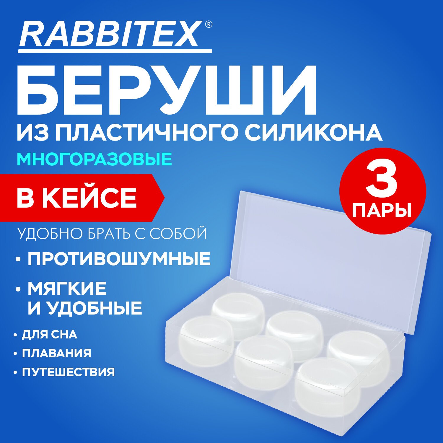 Беруши анатомические восковые из пластичного силикона, КОМПЛЕКТ 3 пары в контейнере, SNR 32 дБ, RABBITEX, 671320