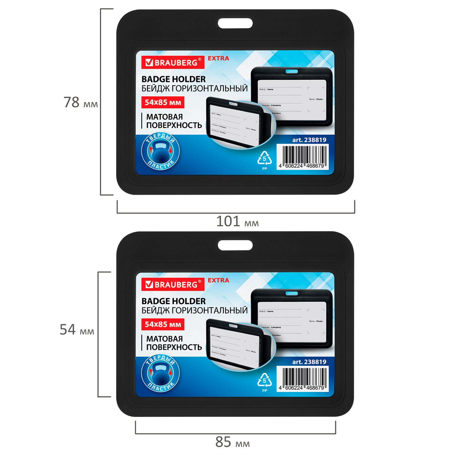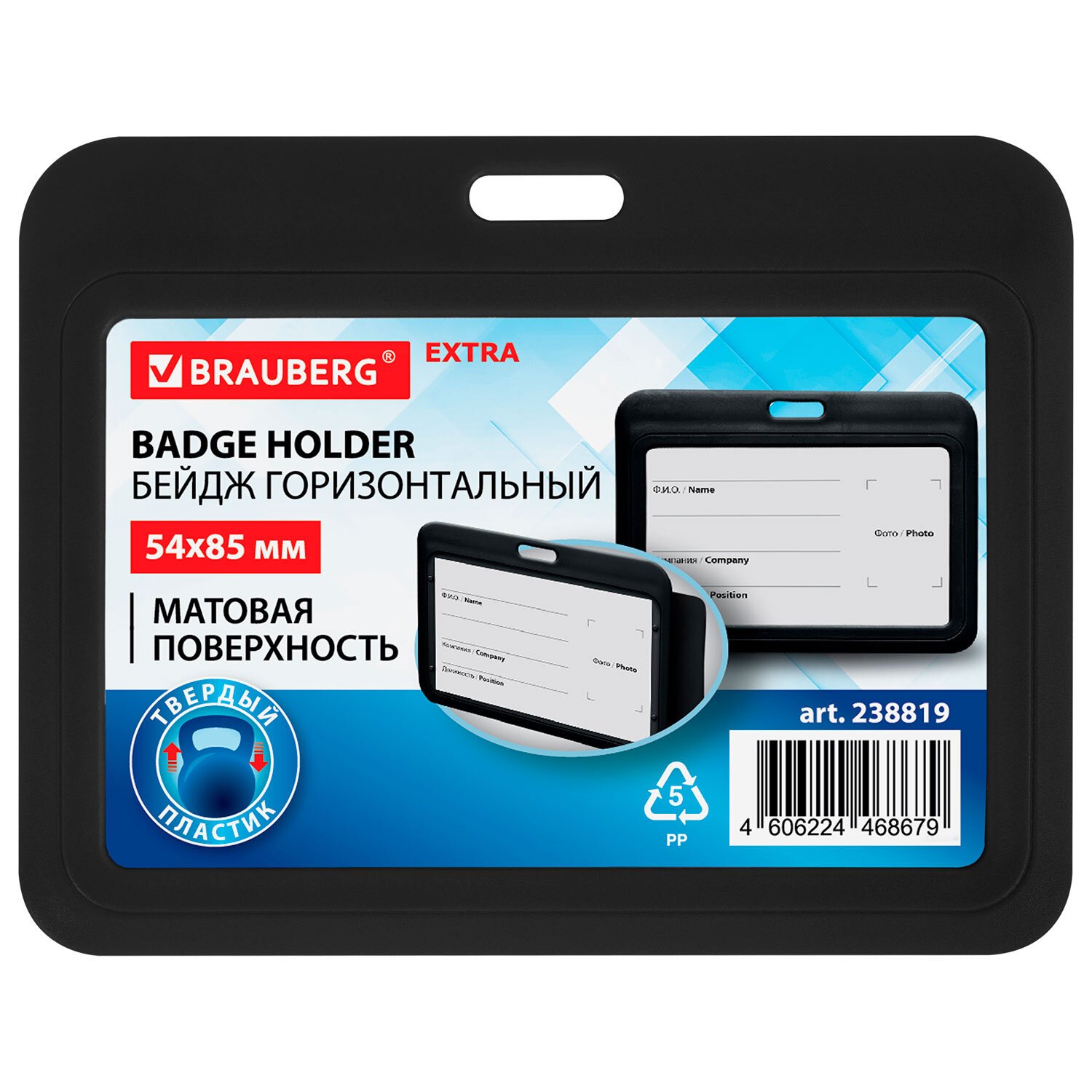 Бейдж горизонтальный (54х85 мм), черный, МАТОВАЯ ПОВЕРХНОСТЬ, BRAUBERG EXTRA, 238819