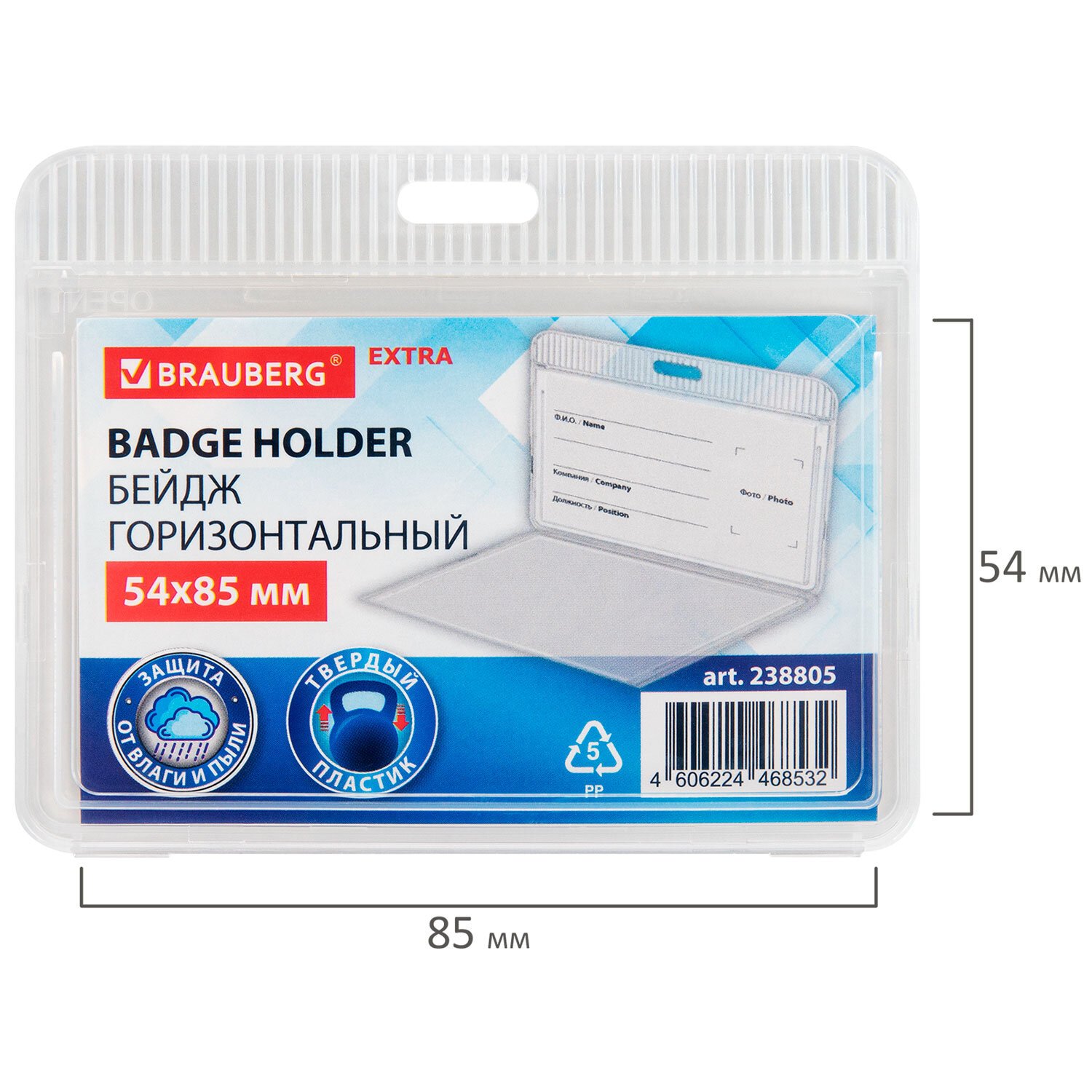 Бейдж горизонтальный (54х85 мм), прозрачный, ЗАЩИТА ОТ ВЛАГИ И ПЫЛИ, BRAUBERG EXTRA, 238805