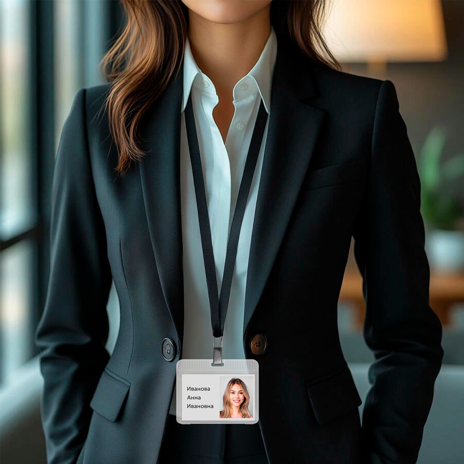 Бейдж подходит для крепления на ленте, держателе с рулеткой. Изготовлен из жесткого пластика, гарантирующего долгий срок службы и защищающего от влаги и пыли Вашу именную карту. Идеально подойдёт для чувствительных к механическим повреждениям магнитных карт и пропусков. Размер вкладыша 54х85 мм. Обратная сторона вкладыша подготовлена под персонализацию - фото, ФИО, должность и название компании.