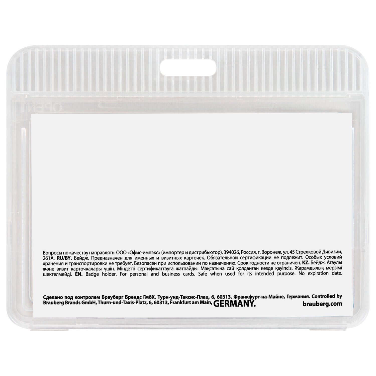 Горизонтальный бейдж BRAUBERG для именной карточки предназначен для идентификации сотрудников в компаниях, а также на семинарах, тренингах, презентациях и других мероприятиях.