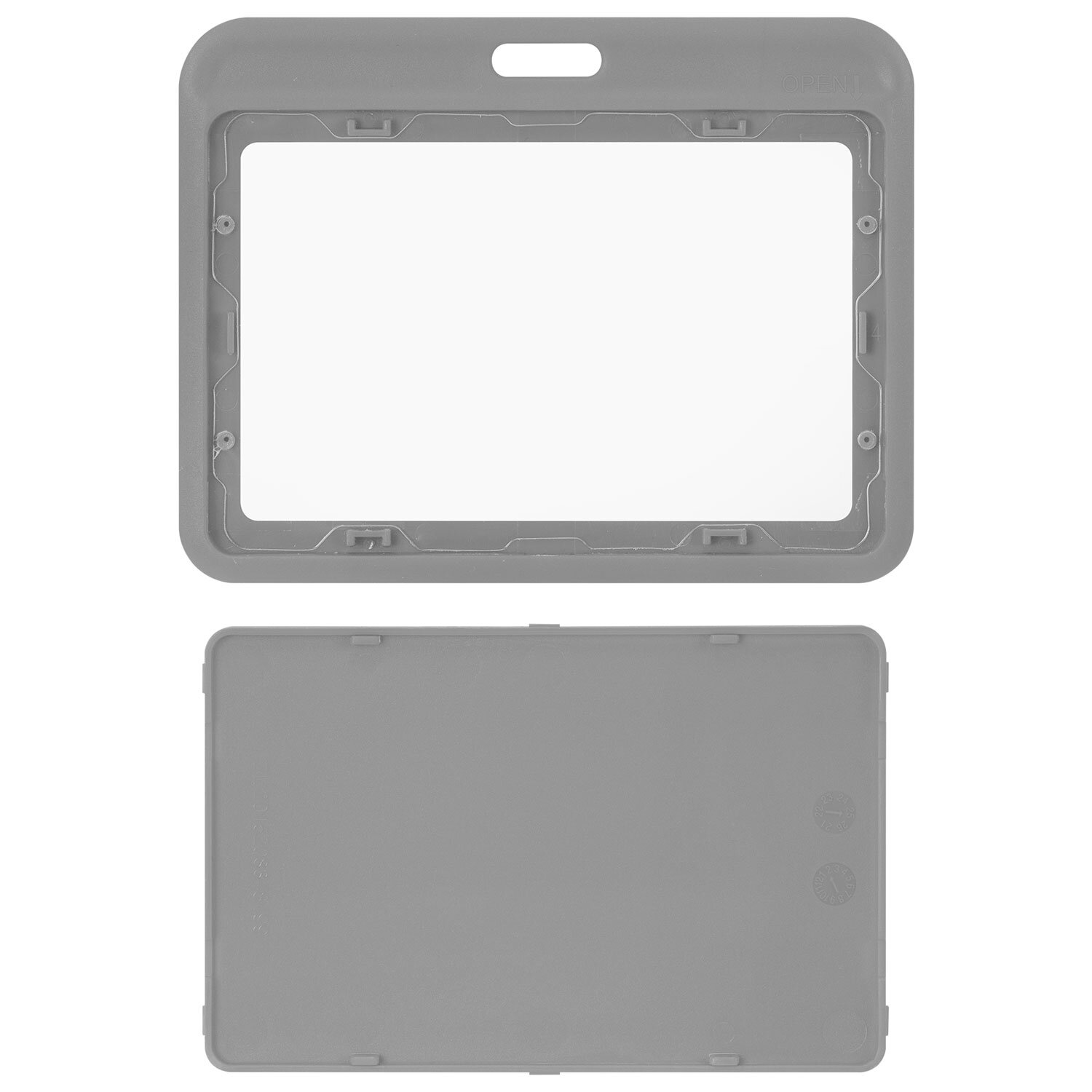Бейдж горизонтальный (54х85 мм), ДВУСТОРОННИЙ, серый, ЗАЩИТА ОТ ВЛАГИ И ПЫЛИ, BRAUBERG EXTRA, 238810