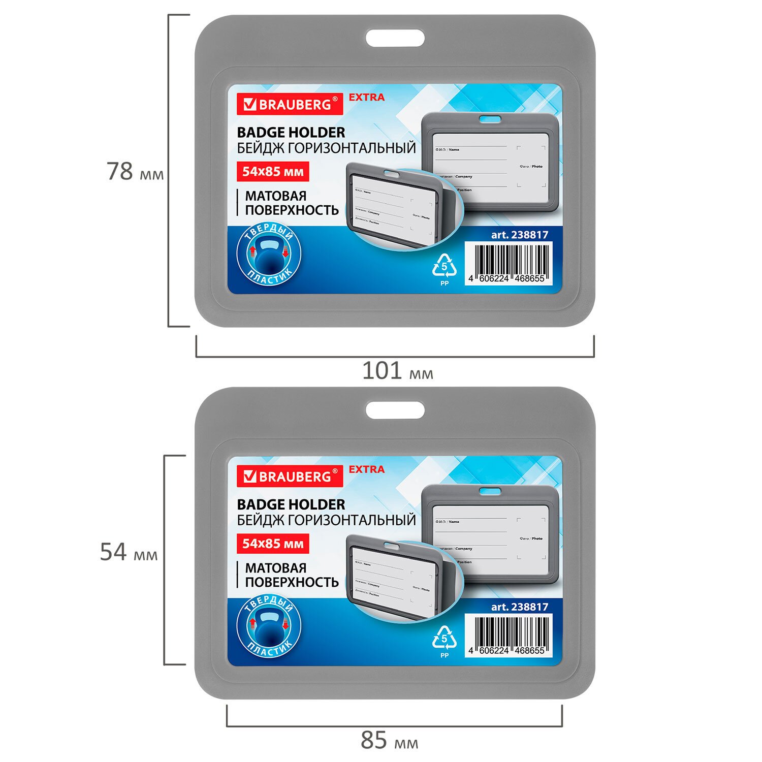 Бейдж горизонтальный (54х85 мм), серый, МАТОВАЯ ПОВЕРХНОСТЬ, BRAUBERG EXTRA, 238817