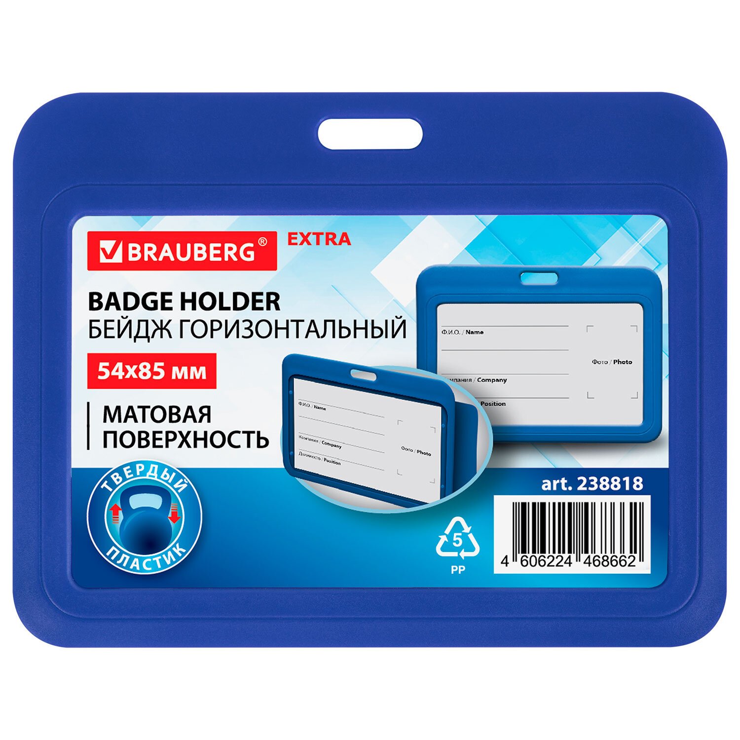 Бейдж горизонтальный (54х85 мм), синий, МАТОВАЯ ПОВЕРХНОСТЬ, BRAUBERG EXTRA, 238818