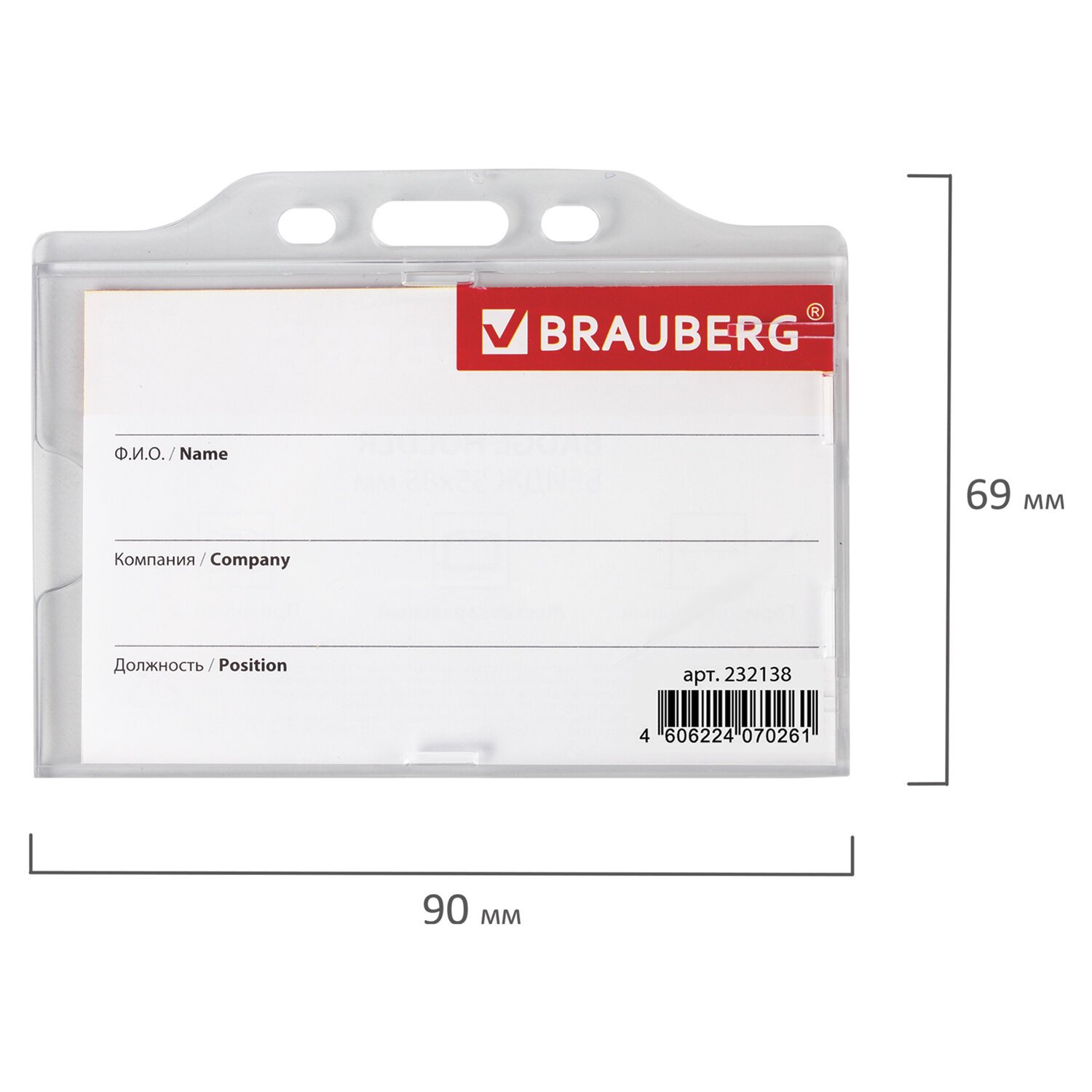 Горизонтальный бейдж BRAUBERG для именной карточки предназначен для идентификации сотрудников в компаниях, а также на семинарах, тренингах, презентациях и других мероприятиях.