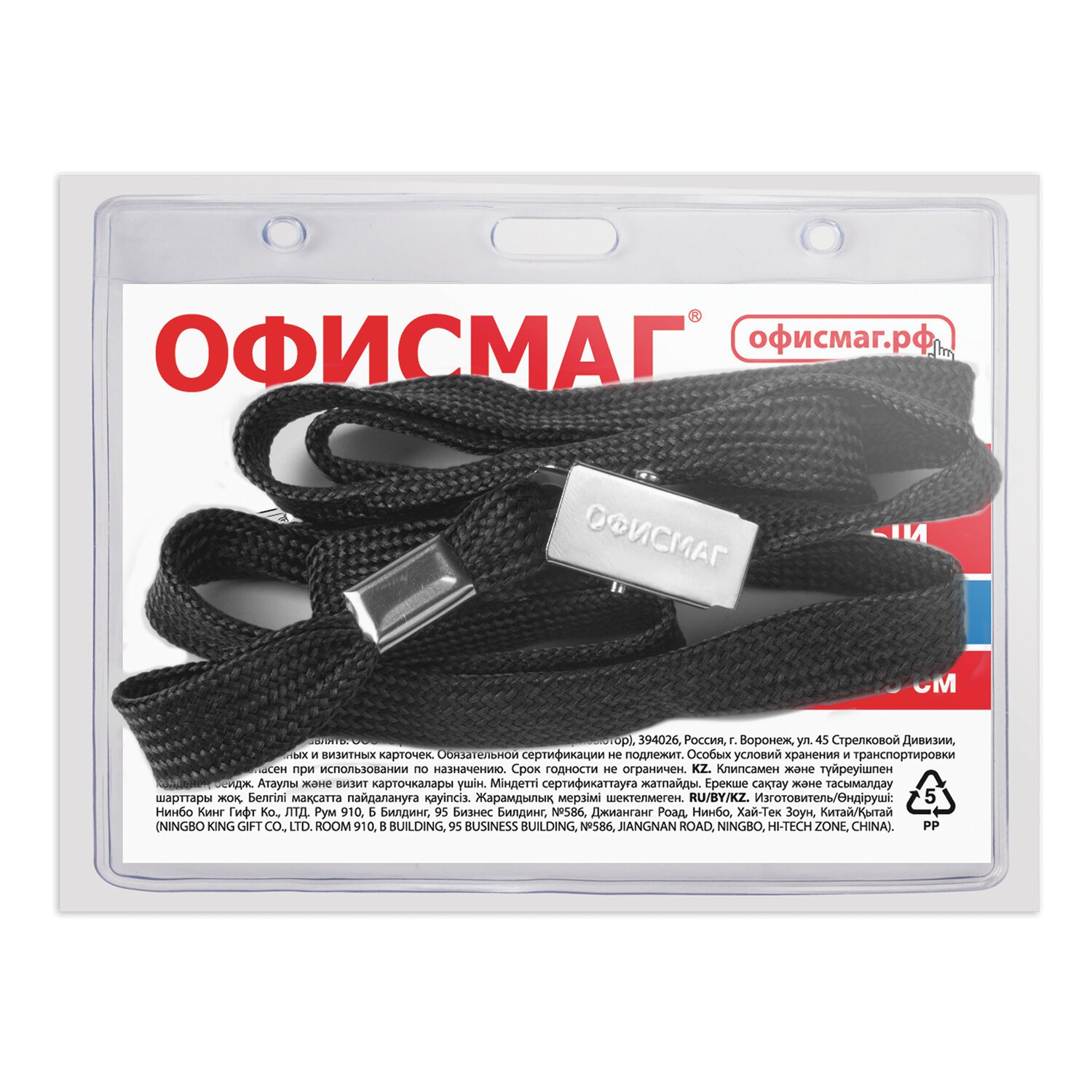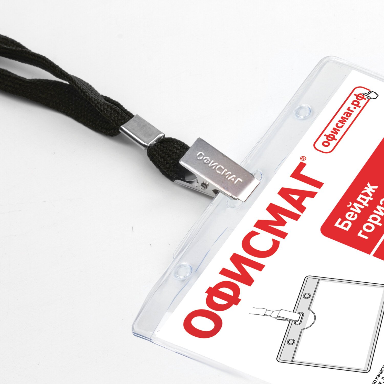 Бейдж горизонтальный (60х90 мм), на черной ленте 45 см, ОФИСМАГ, 235707