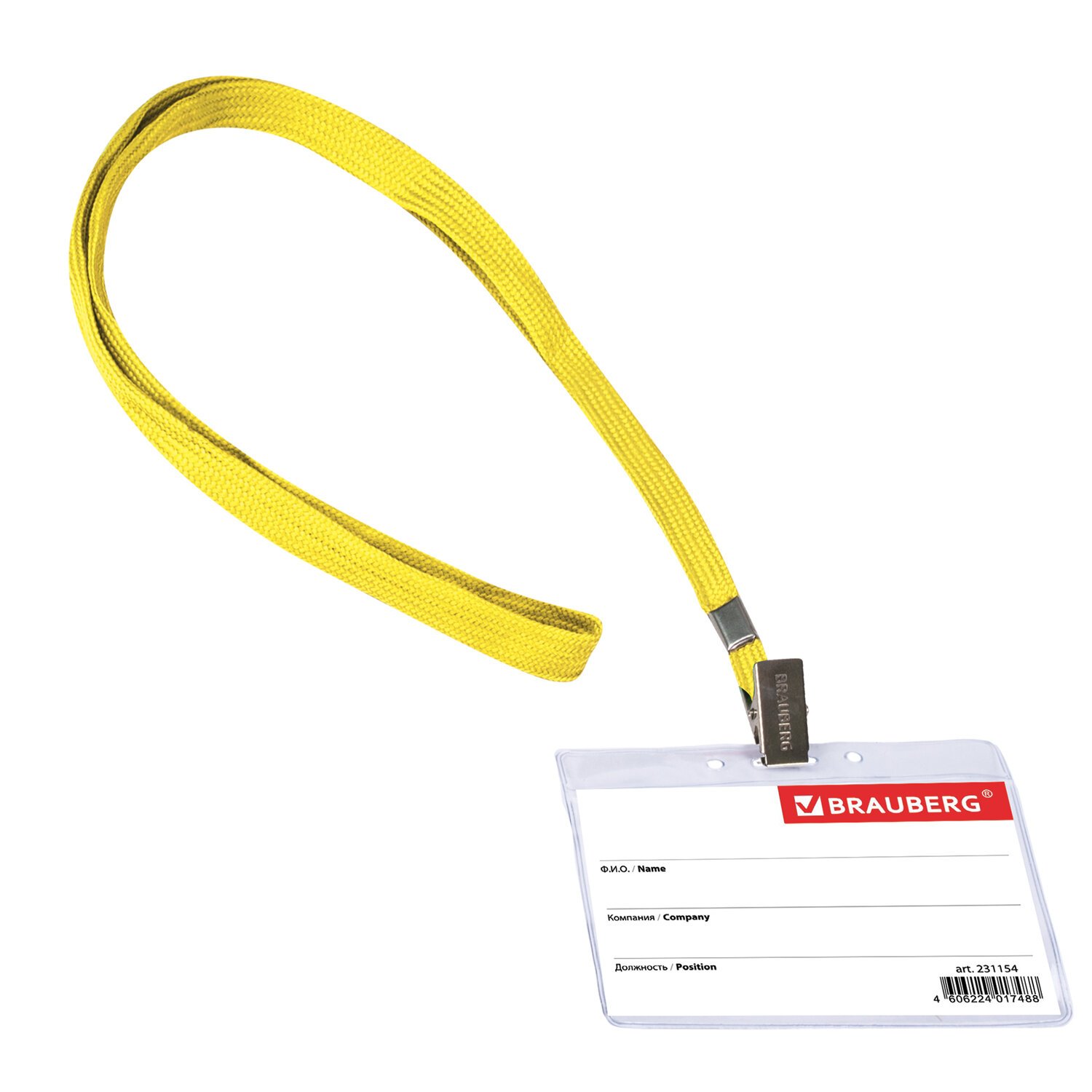 Бейдж горизонтальный (60х90 мм), на желтой ленте 45 см, BRAUBERG, 231154