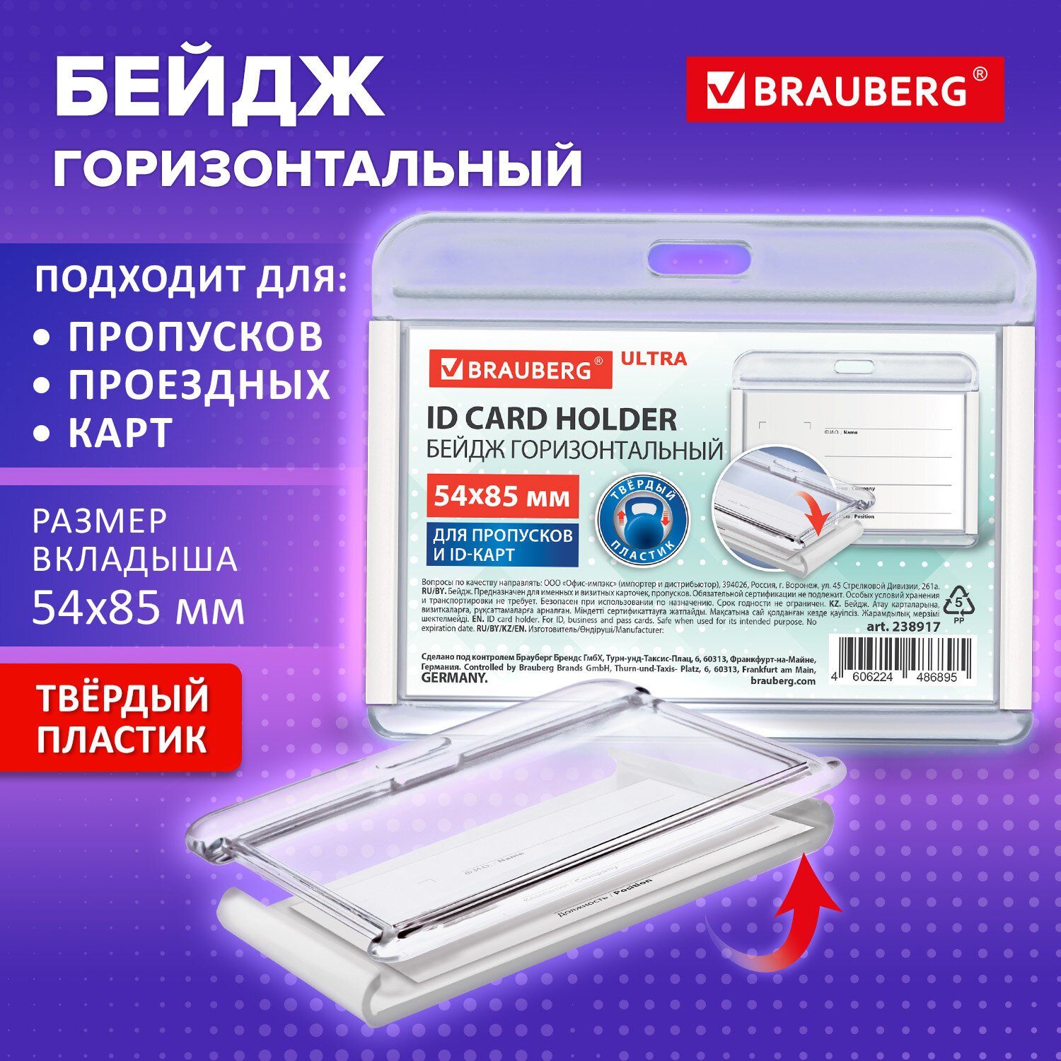 Горизонтальный бейдж BRAUBERG ULTRA для хранения пропусков и карточек сотрудников, ID-карт, проездных и банковских карт.