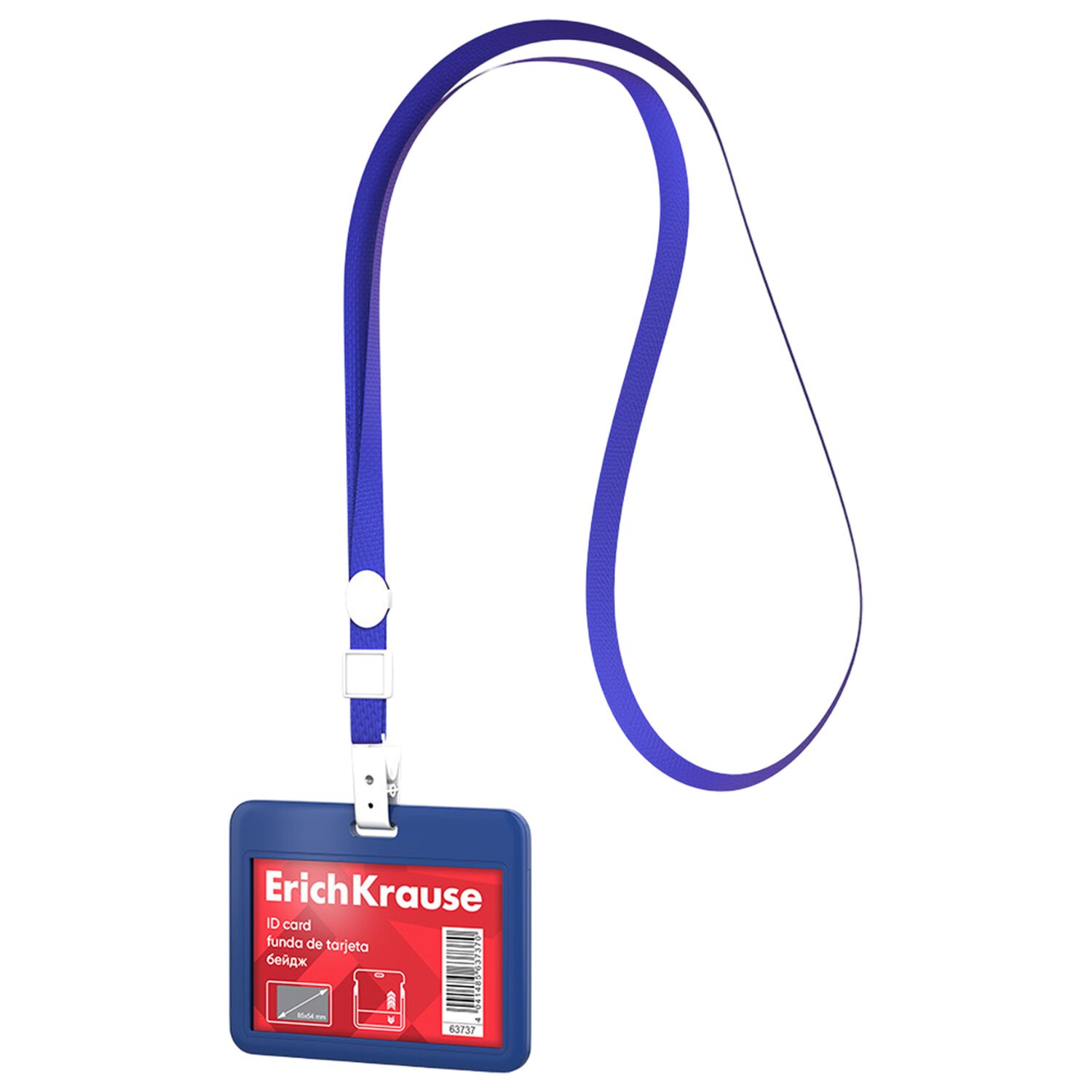 Бейдж горизонтальный ERICH KRAUSE (85х54мм), корпус синий, цвет ленты синий, 63737