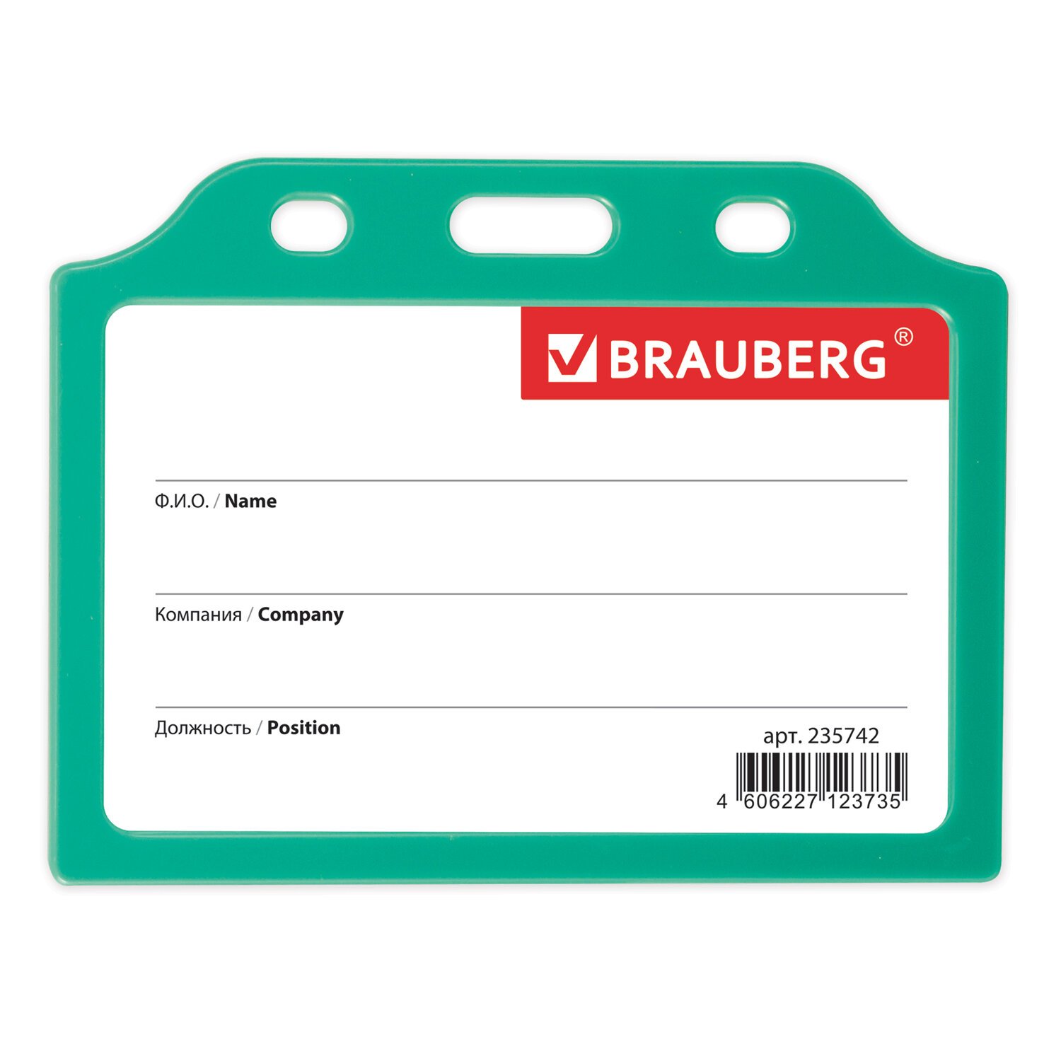 Бейдж горизонтальный жесткокаркасный (55х85 мм), без держателя, ЗЕЛЕНЫЙ, BRAUBERG, 235742