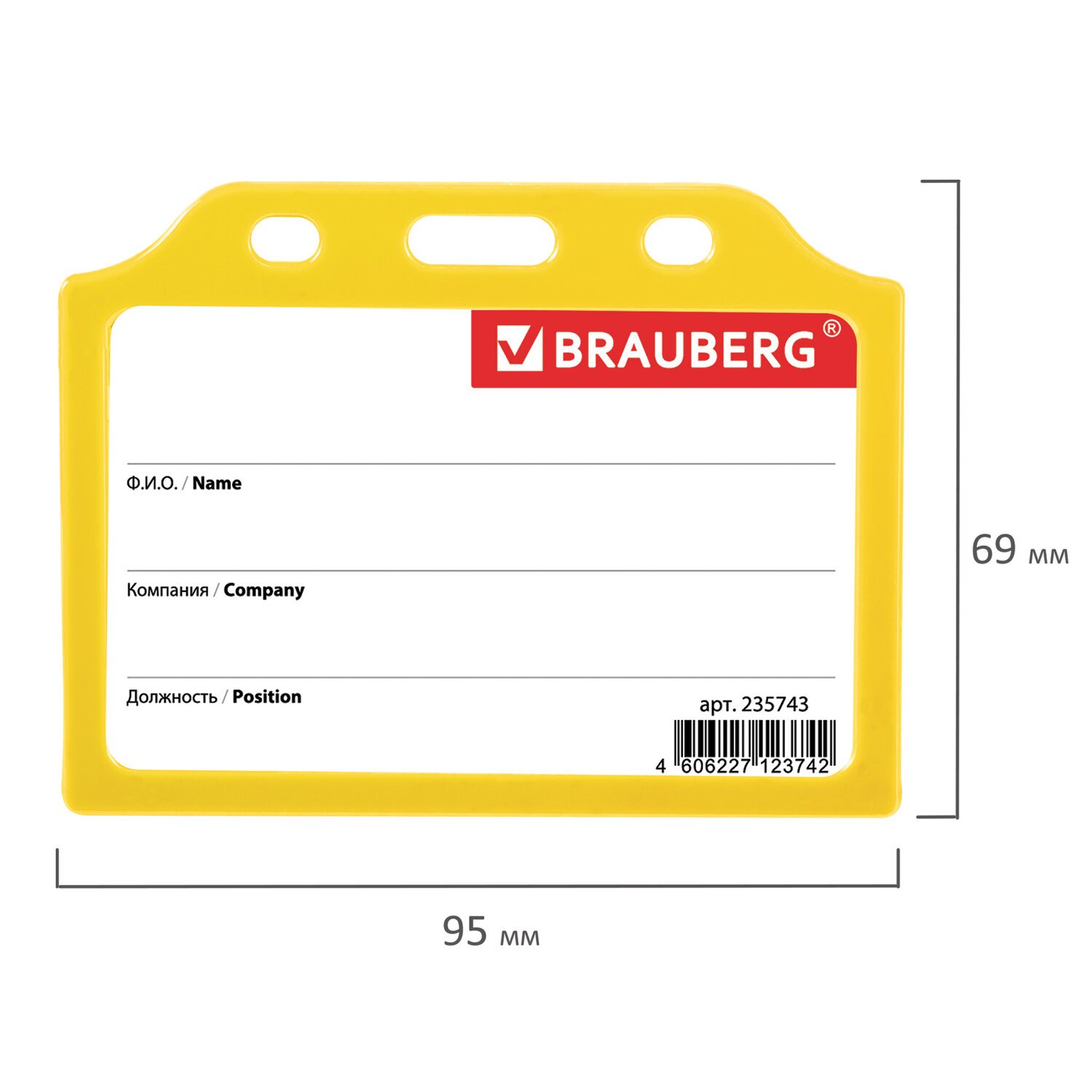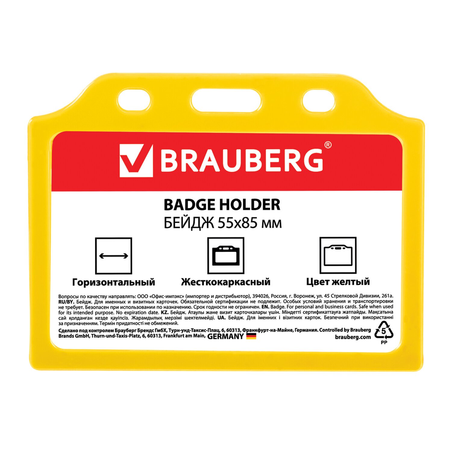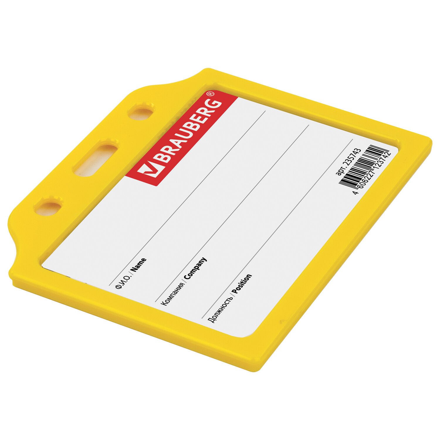 Бейдж горизонтальный жесткокаркасный (55х85 мм), без держателя, ЖЕЛТЫЙ, BRAUBERG, 235743