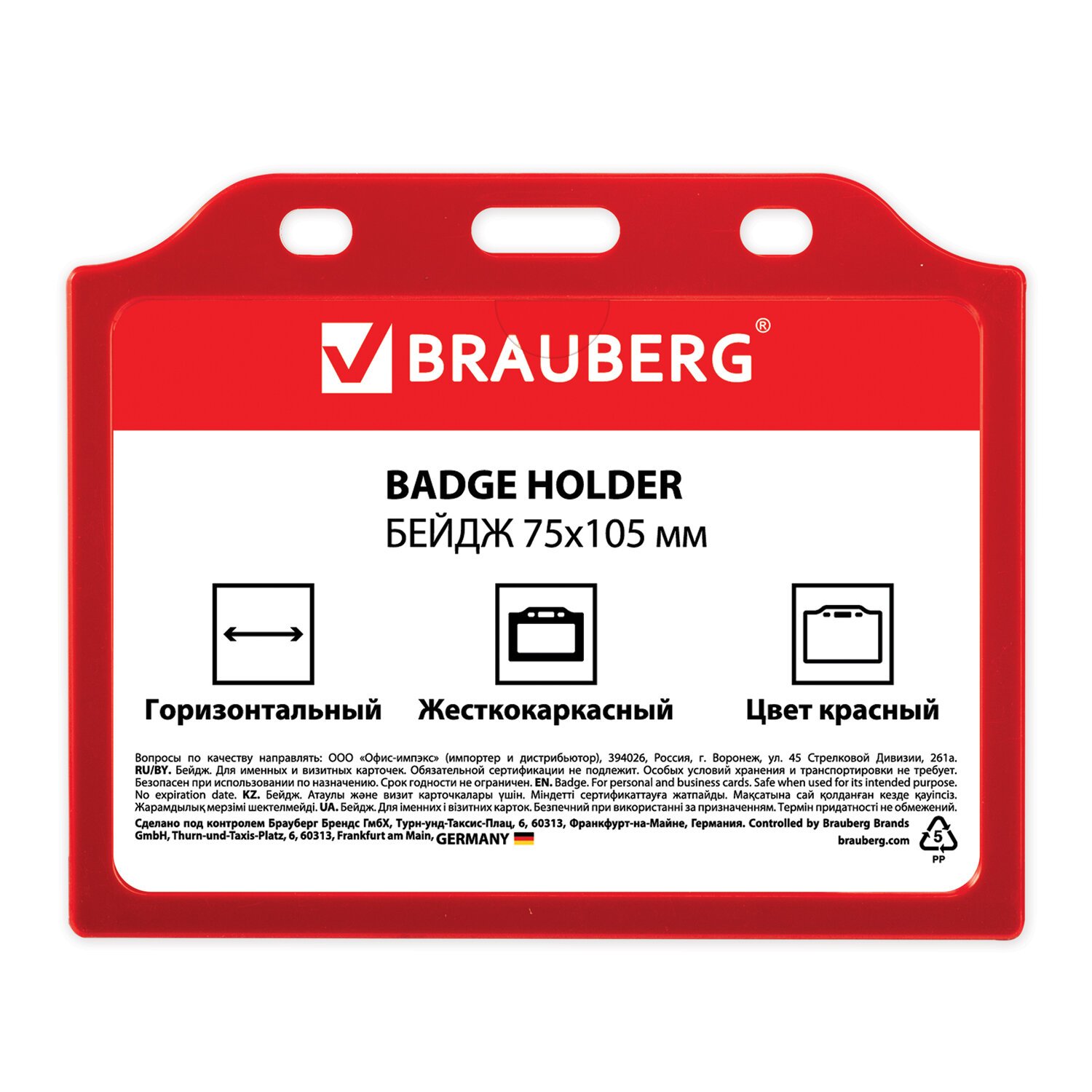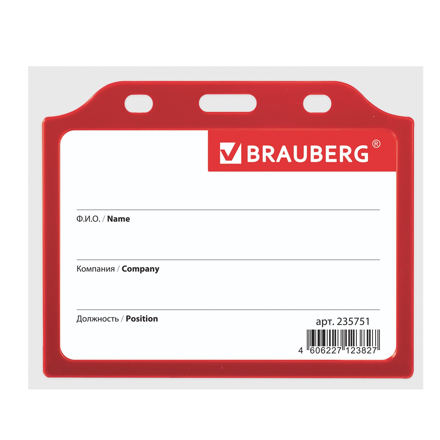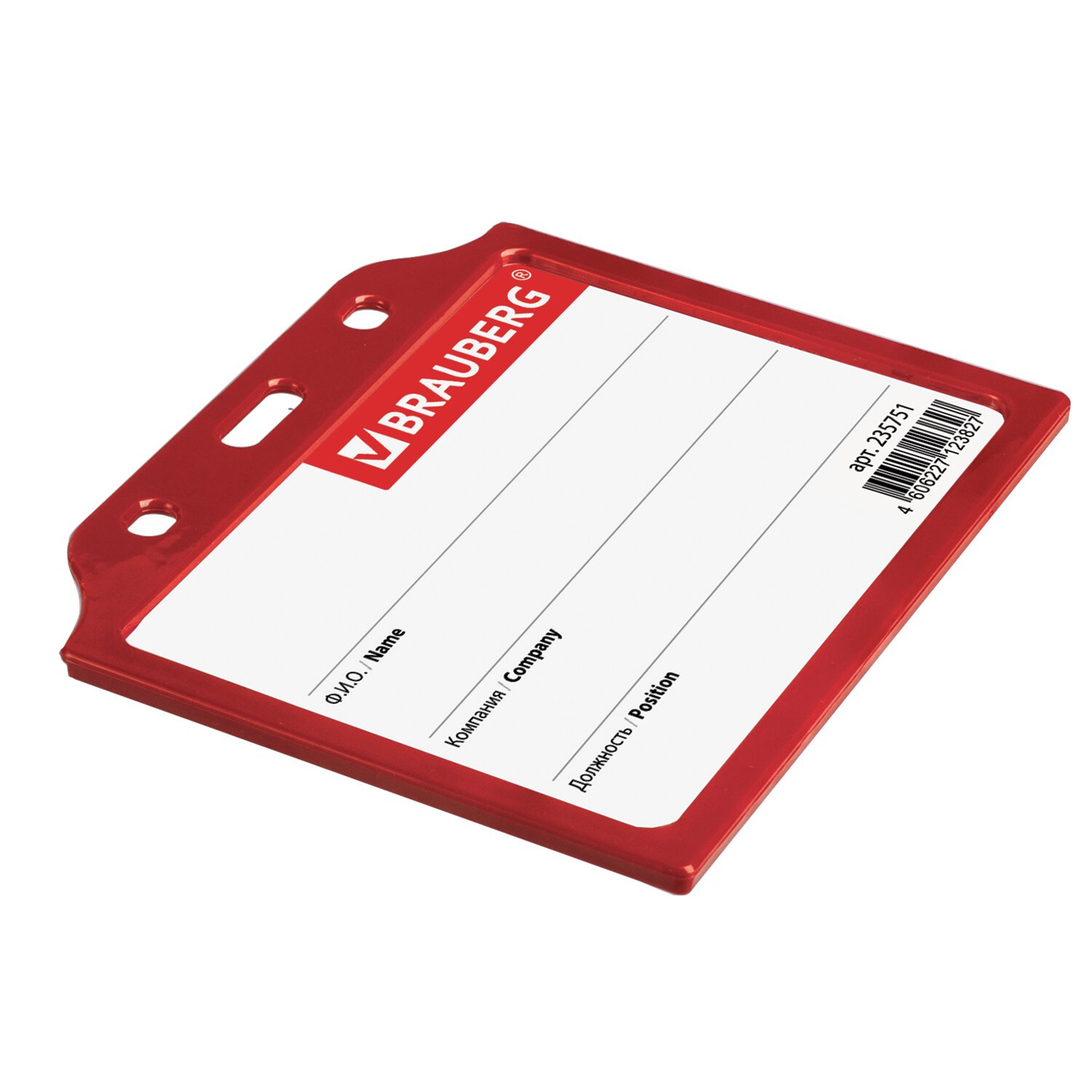 Бейдж горизонтальный жесткокаркасный (75х105 мм), без держателя, КРАСНЫЙ, BRAUBERG, 235751