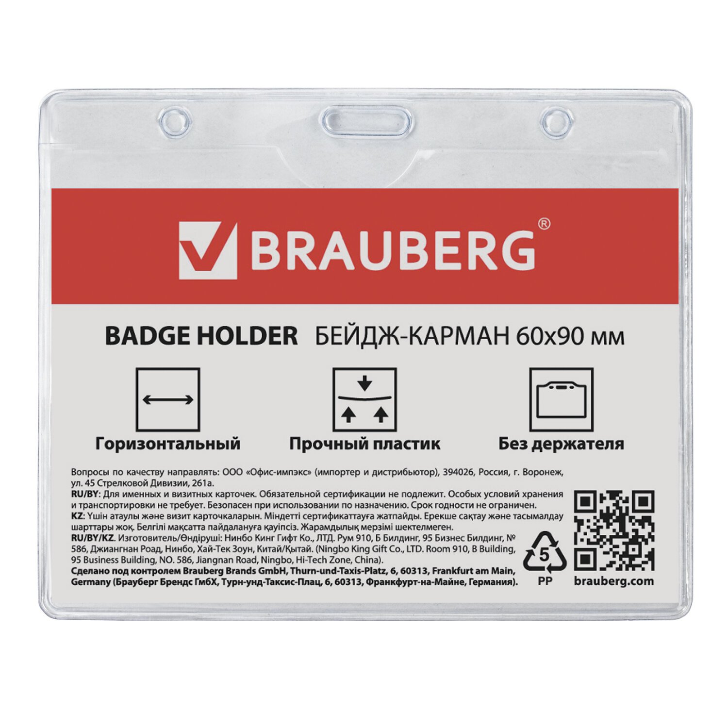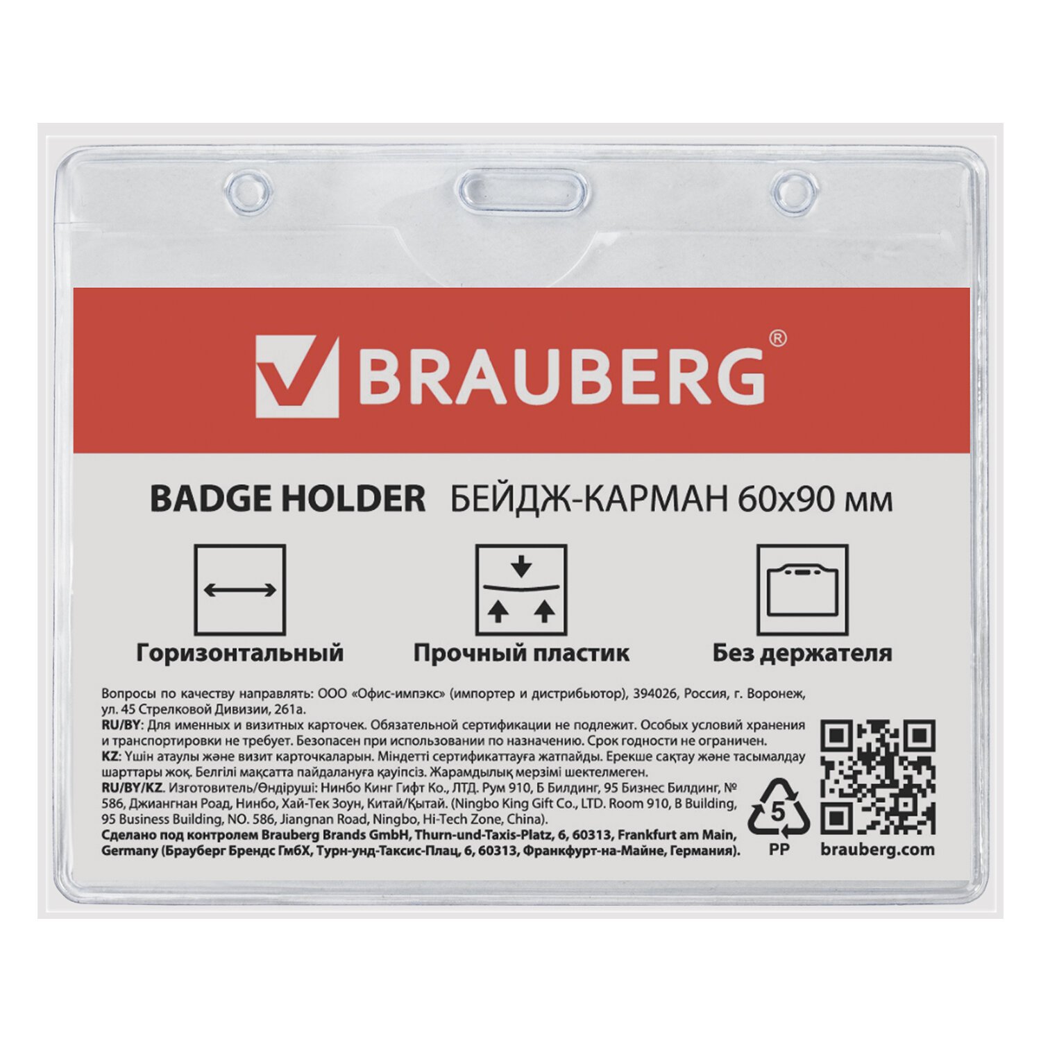 Бейдж-карман горизонтальный (60х90 мм), без держателя, BRAUBERG, 235426