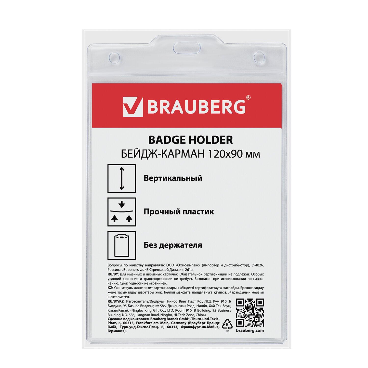 Бейдж-карман вертикальный БОЛЬШОЙ (120х90 мм), без держателя, BRAUBERG, 235696