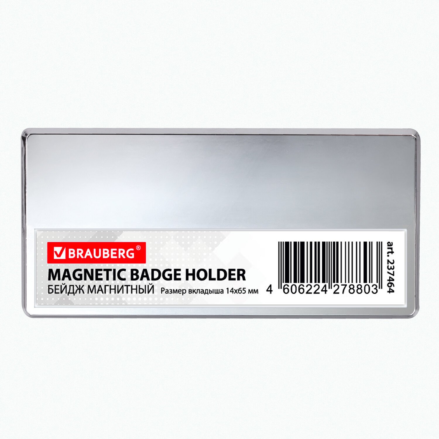 Бейдж магнитный серебристый 34х70 мм с окошком 14х65 мм, BRAUBERG MAGNETIC, 237464