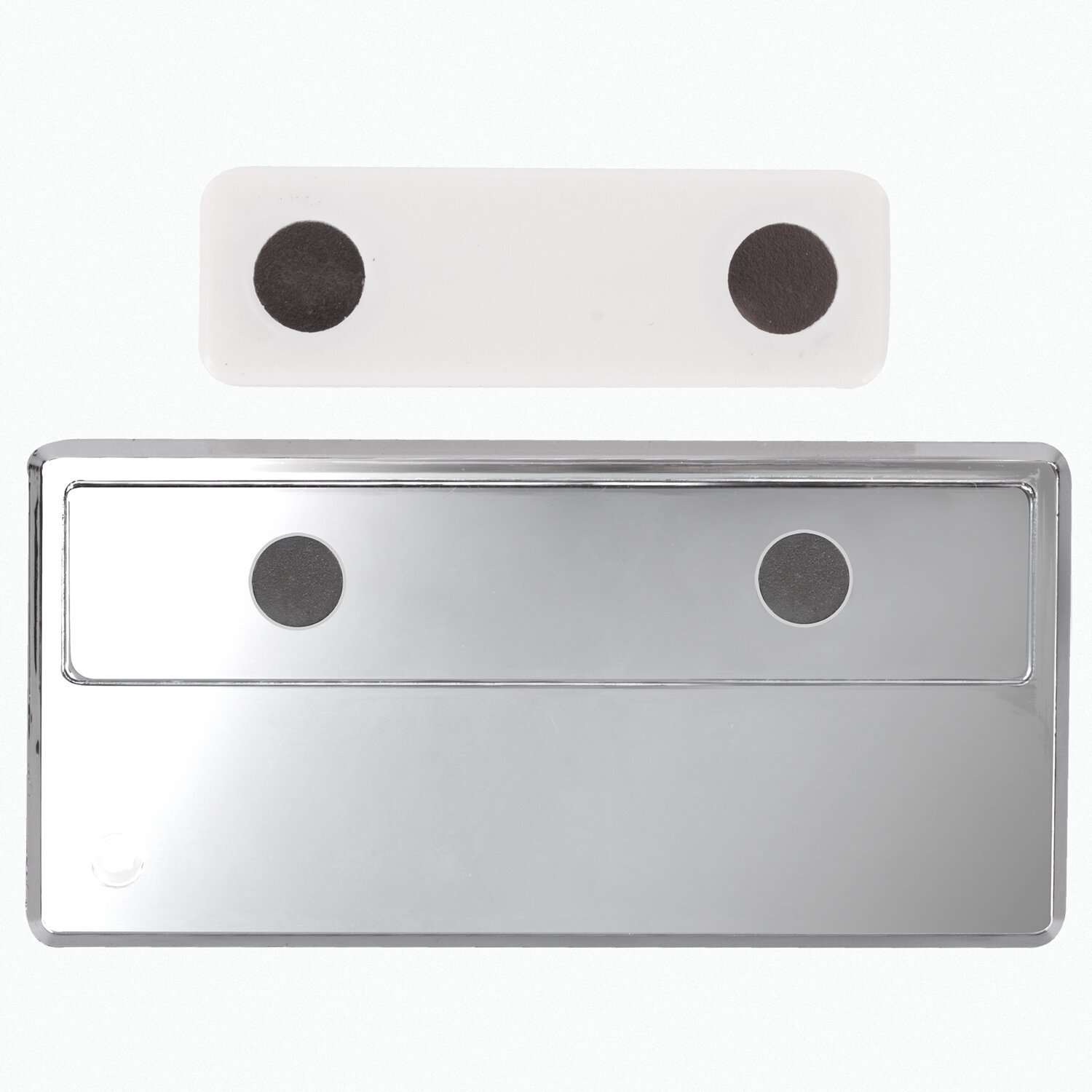 Твердый зеркальный пластик премиального серебристого цвета гарантирует долгий срок службы. Будет незаменим для сотрудников, обязанных по роду деятельности носить бейджи. Закрепляется магнитом. Защитит Вашу одежду от необходимости в мелких проколах булавкой. Размер вкладыша - 14х65 мм. Серебристый цвет бейджа позволит выгодно отличиться среди обычных магнитных бейджей. Крепление выполнено в белом цвете.