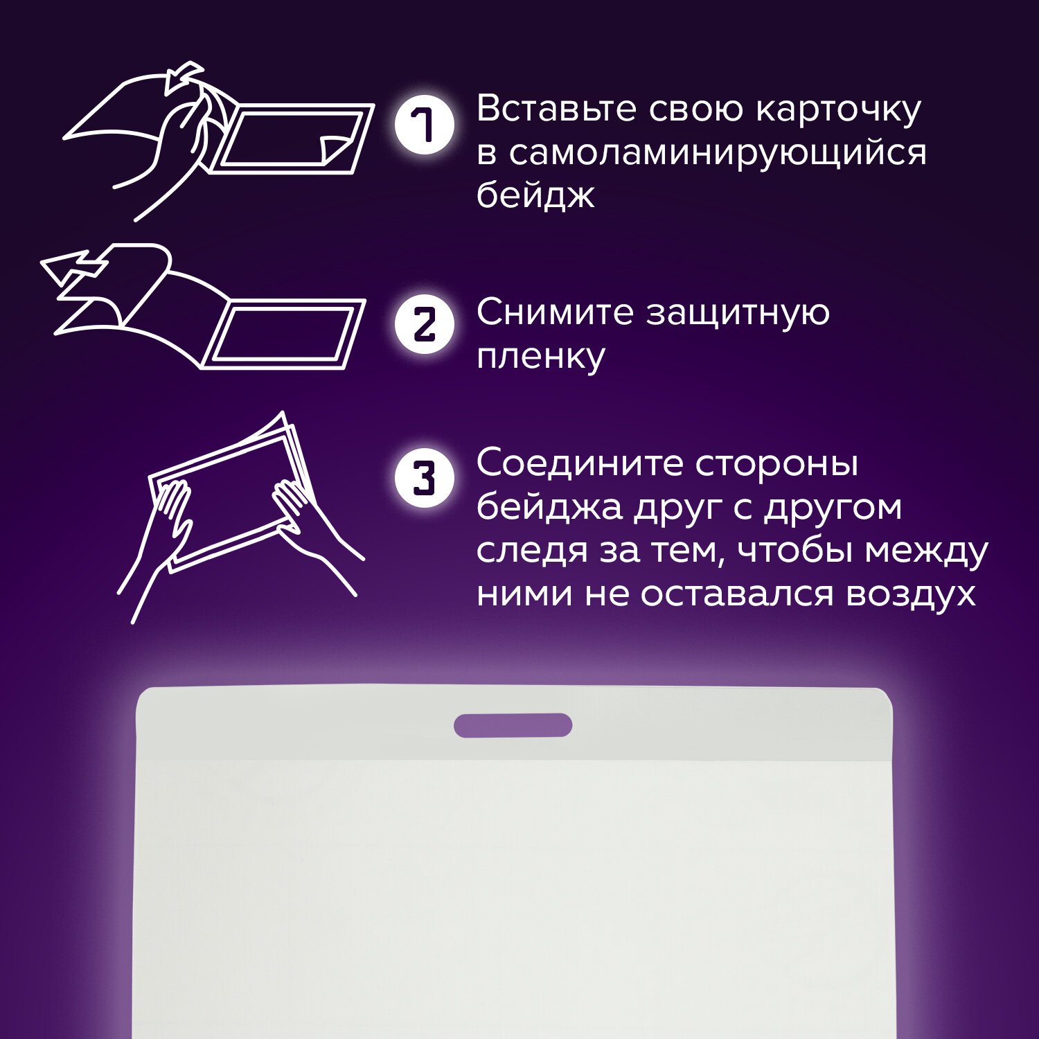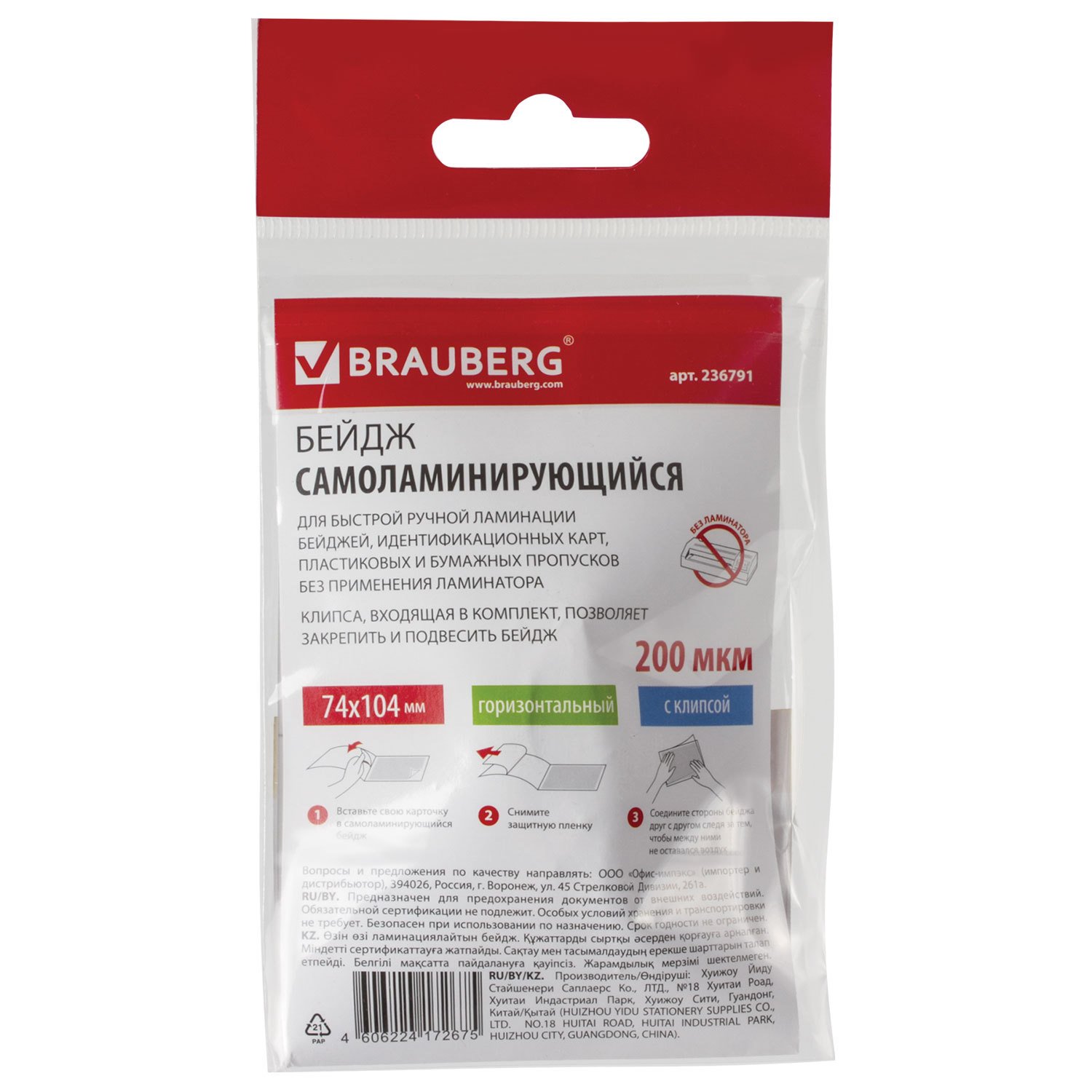 Бейдж самоламинирующийся горизонтальный (74х104 мм), с клипсой, BRAUBERG, 236791