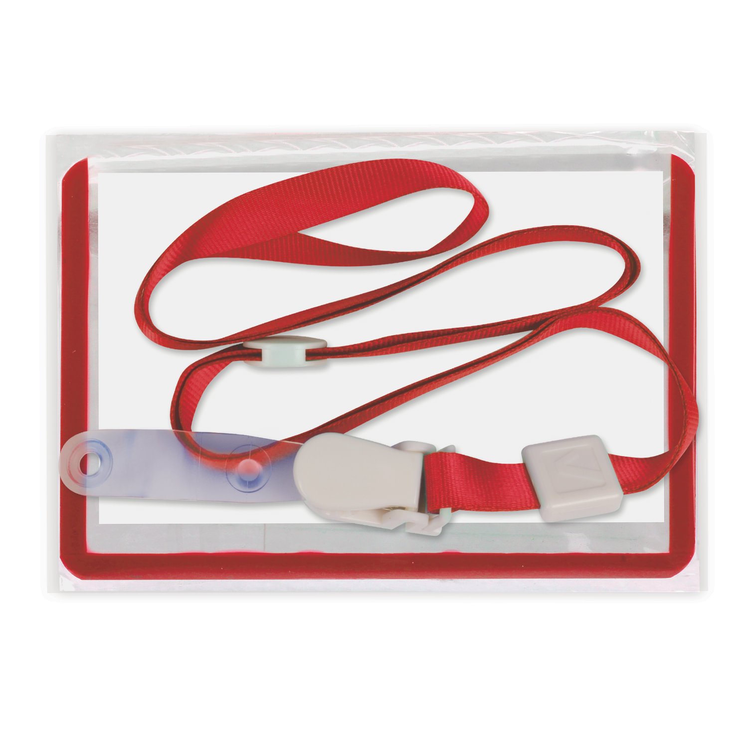 Комплектуется специальной нейлоновой лентой со съемной клипсой. Бейдж можно носить на ленте, либо крепить на одежду с помощью клипсы. Размер вкладыша 55х90 мм. Длина ленты 45 см, цвет ленты - красный. Упакован в пластиковый пакет.