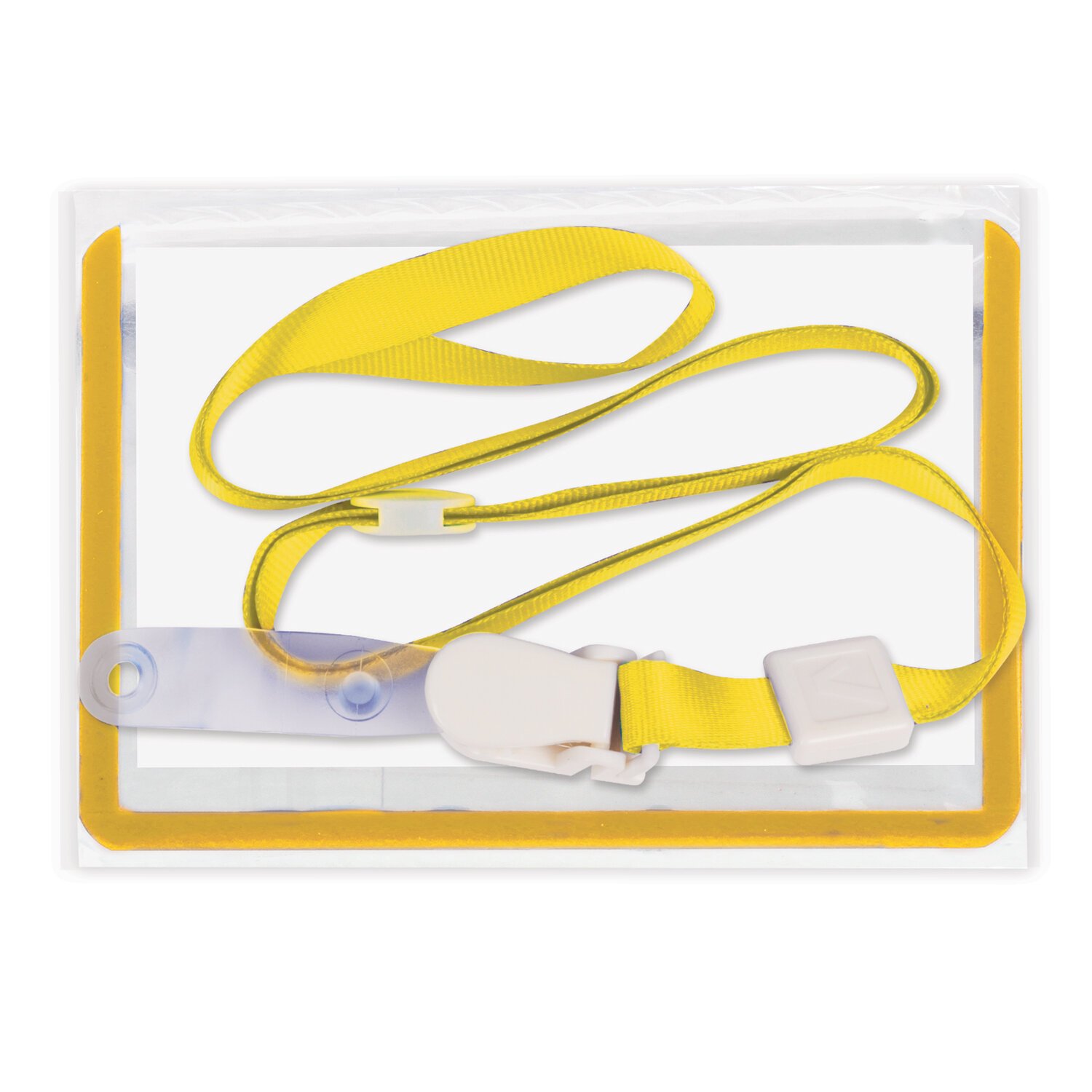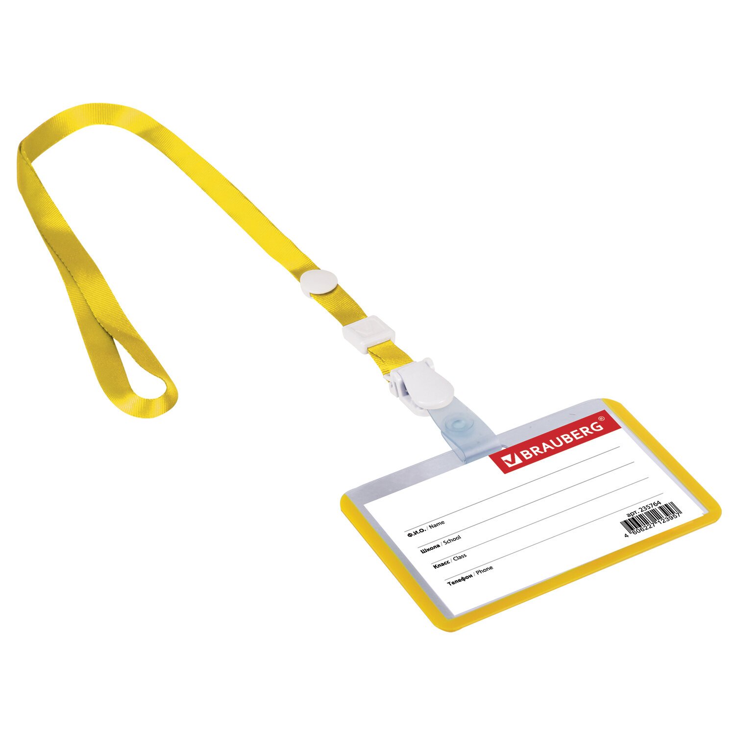 Бейдж школьника горизонтальный (55х90 мм), на ленте со съемным клипом, ЖЕЛТЫЙ, BRAUBERG, 235764