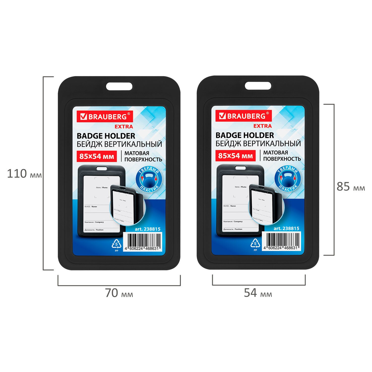Бейдж вертикальный (85х54 мм), черный, МАТОВАЯ ПОВЕРХНОСТЬ, BRAUBERG EXTRA, 238815