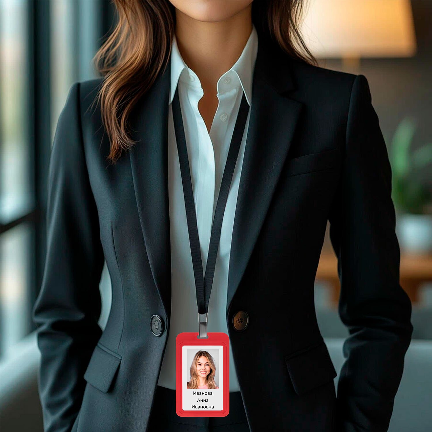 Бейдж подходит для крепления на ленте, держателе с рулеткой. Изготовлен из жесткого, приятного на ощупь, матового пластика, гарантирующего долгий срок службы и защищающего от влаги и пыли Вашу именную карту. Идеально подойдёт для чувствительных к механическим повреждениям магнитных карт и пропусков. Размер вкладыша 85х54 мм. Обратная сторона вкладыша подготовлена под персонализацию - фото, ФИО, должность и название компании.