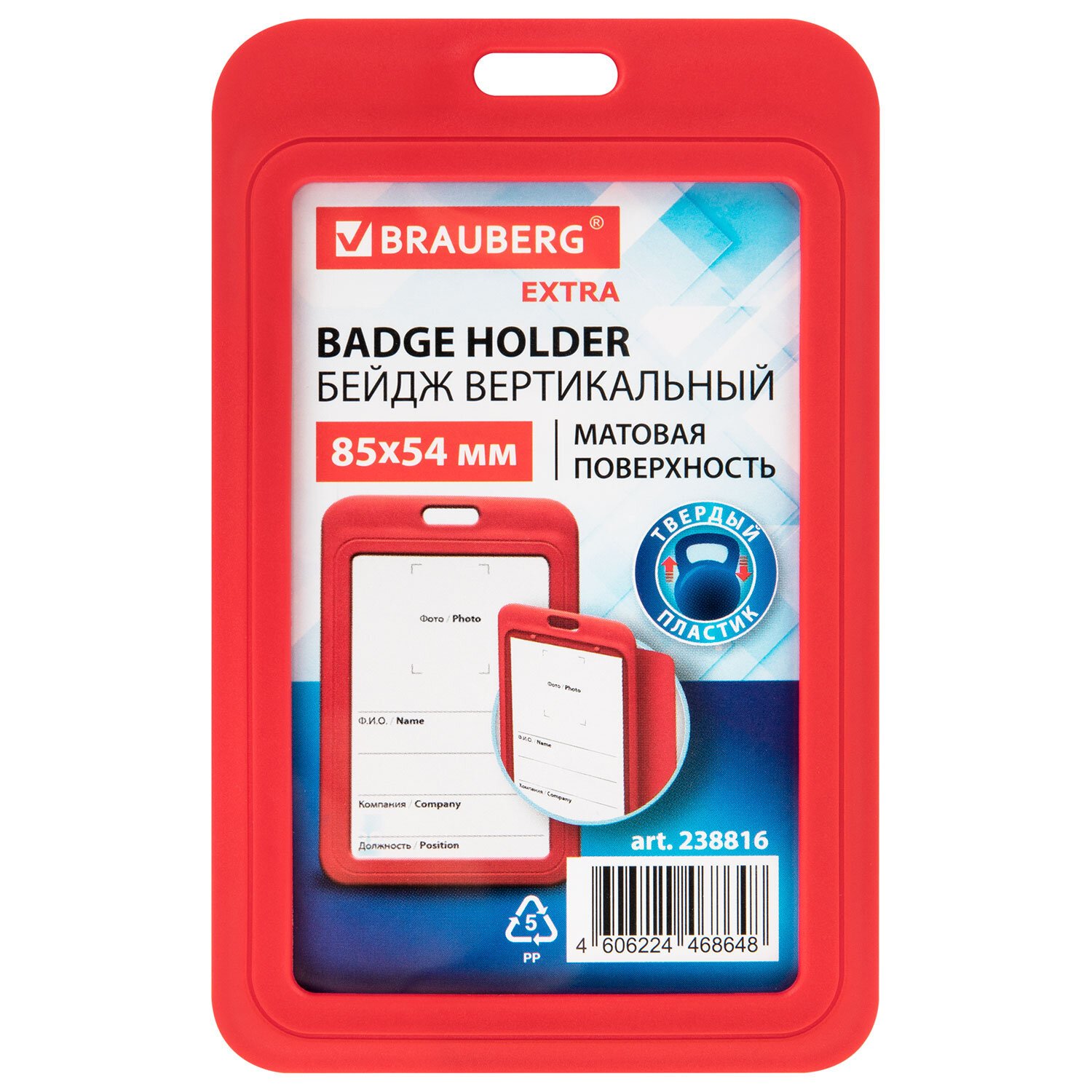 Бейдж вертикальный (85х54 мм), красный, МАТОВАЯ ПОВЕРХНОСТЬ, BRAUBERG EXTRA, 238816