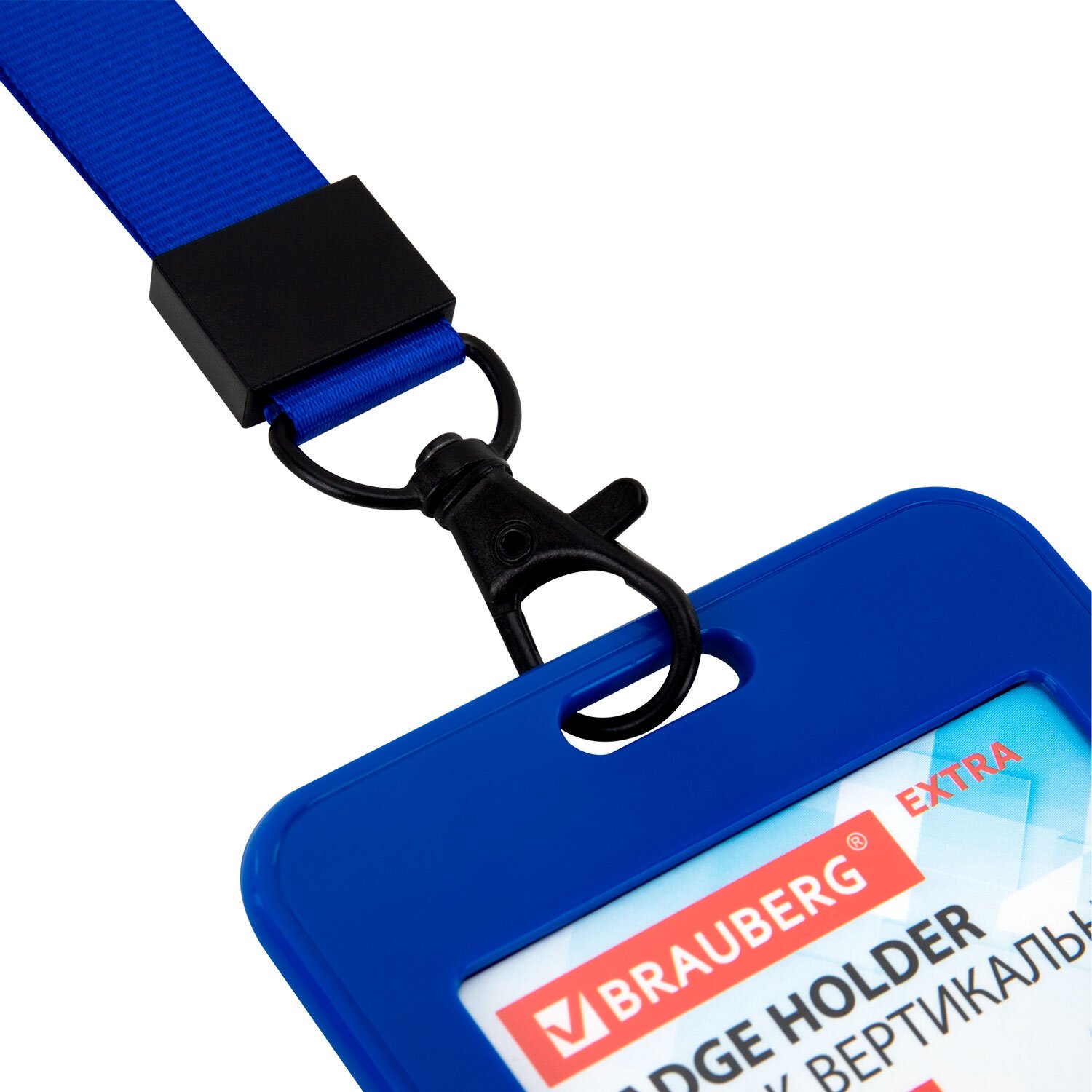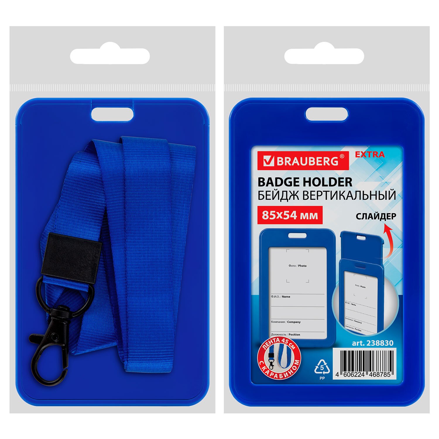 Бейдж вертикальный (85х54 мм), лента 45 см с карабином, СЛАЙДЕР, синий, BRAUBERG EXTRA, 238830
