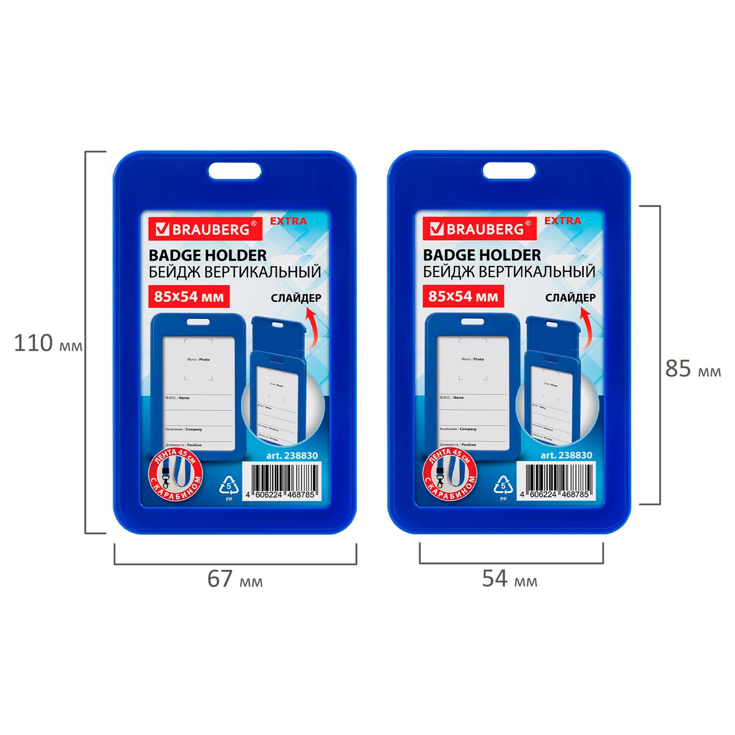 Бейдж вертикальный (85х54 мм), петля с карабином, СЛАЙДЕР, синий, BRAUBERG EXTRA, 238836