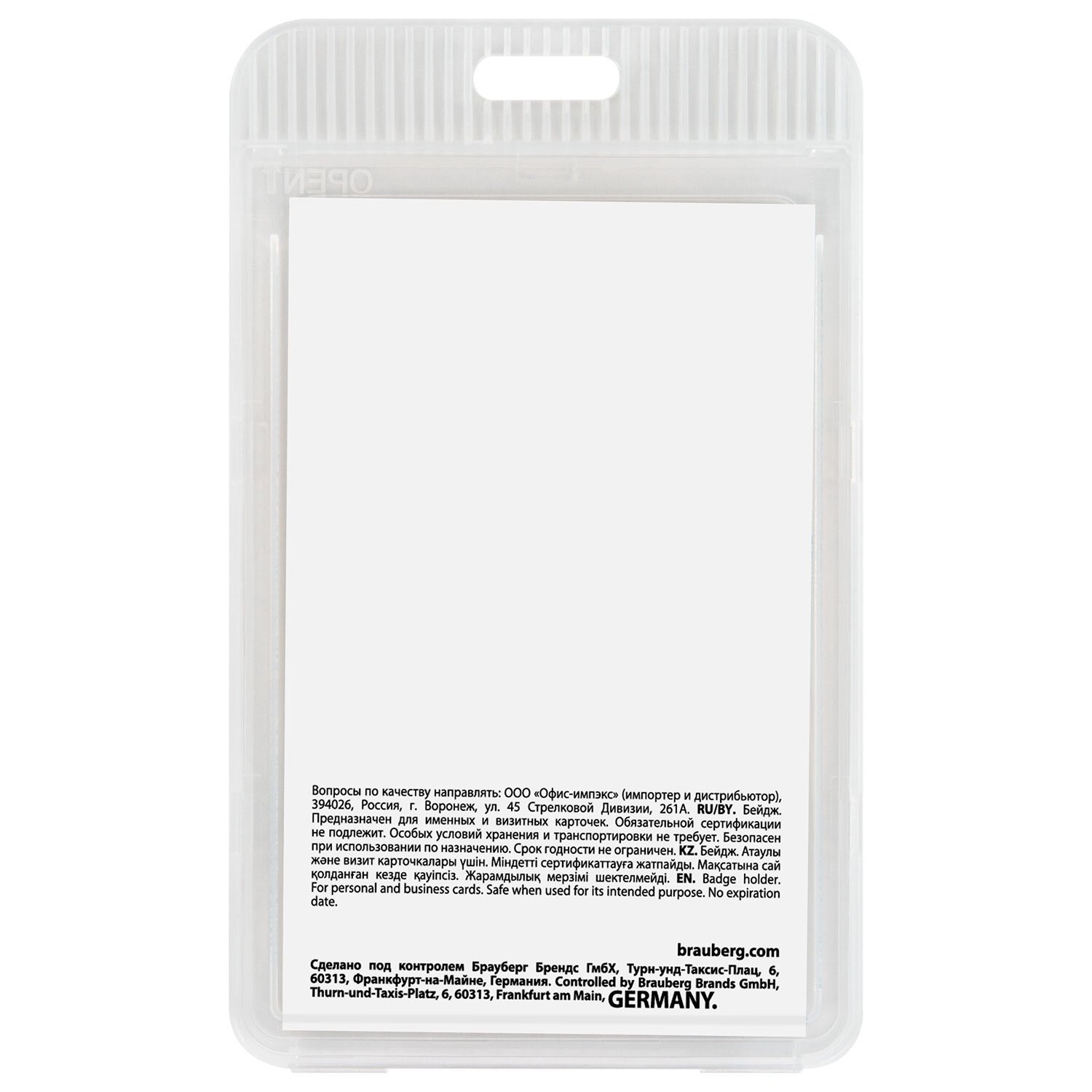 Вертикальный бейдж BRAUBERG для именной карточки предназначен для идентификации сотрудников в компаниях, а также на семинарах, тренингах, презентациях и других мероприятиях.