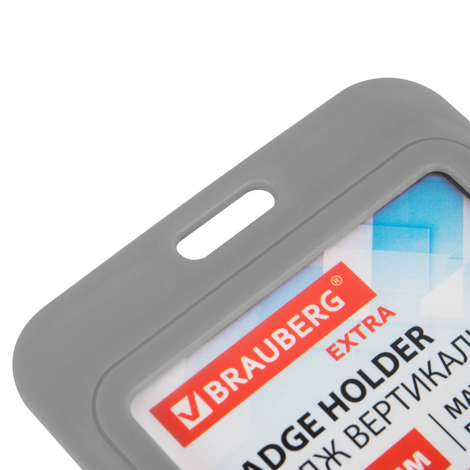 Бейдж вертикальный (85х54 мм), ДВУСТОРОННИЙ, серый, ЗАЩИТА ОТ ВЛАГИ И ПЫЛИ, BRAUBERG EXTRA, 238807