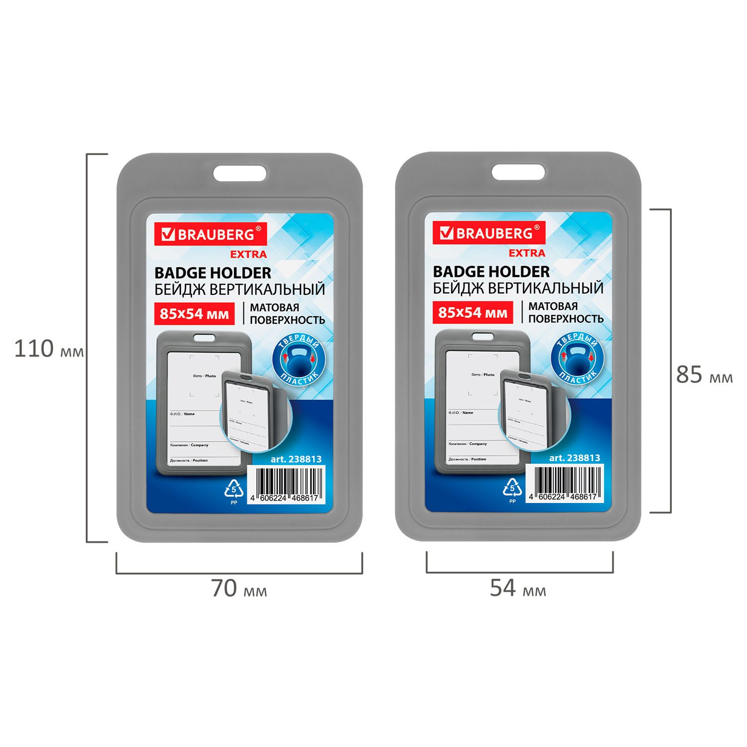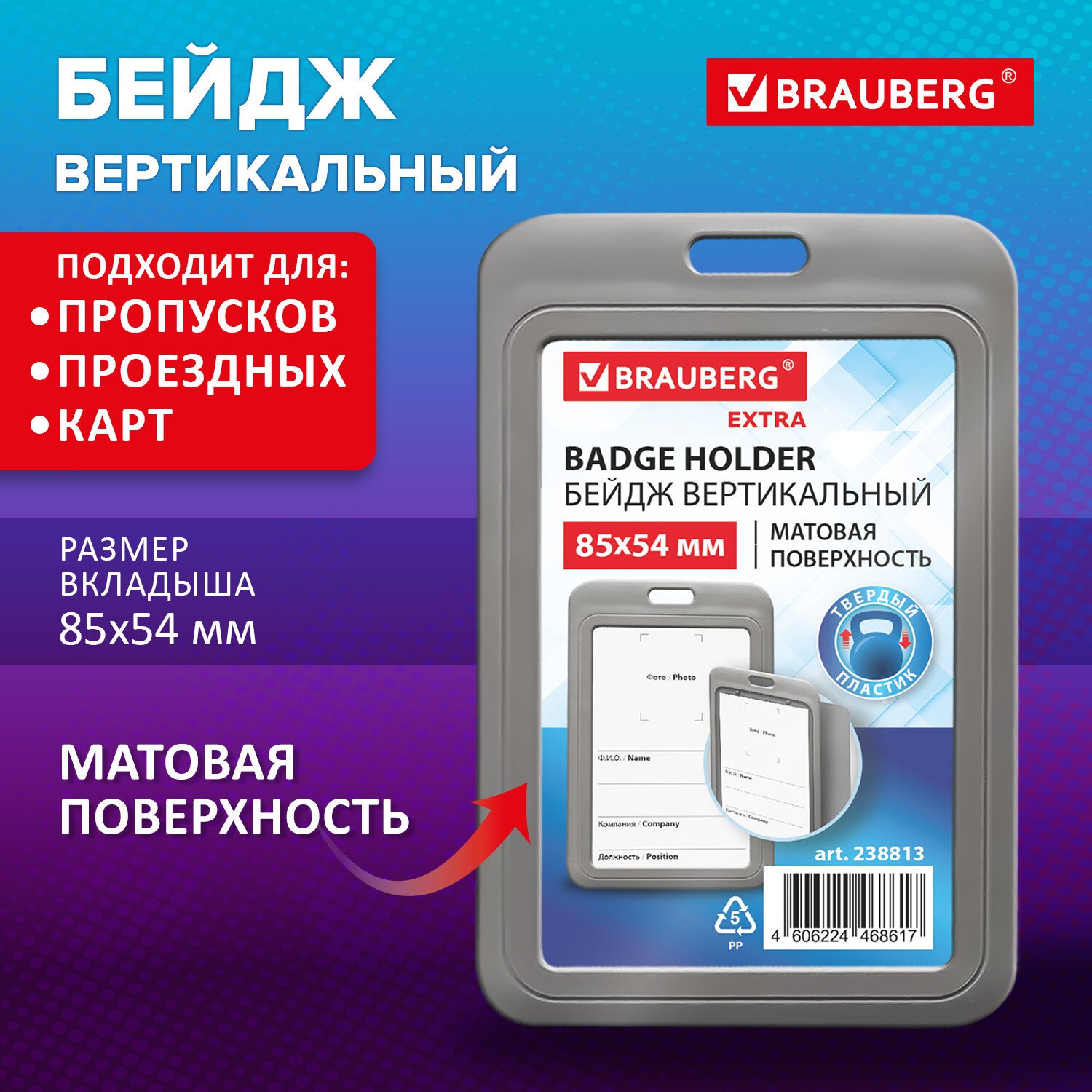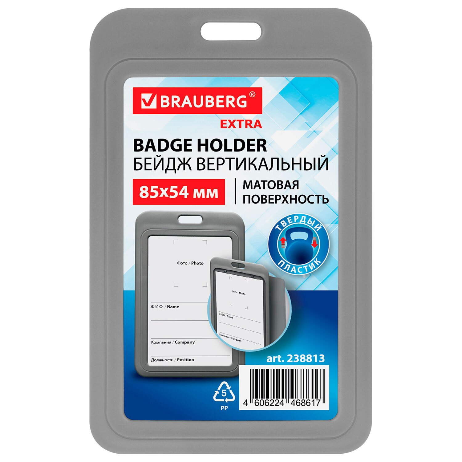 Бейдж вертикальный (85х54 мм), серый, МАТОВАЯ ПОВЕРХНОСТЬ, BRAUBERG EXTRA, 238813