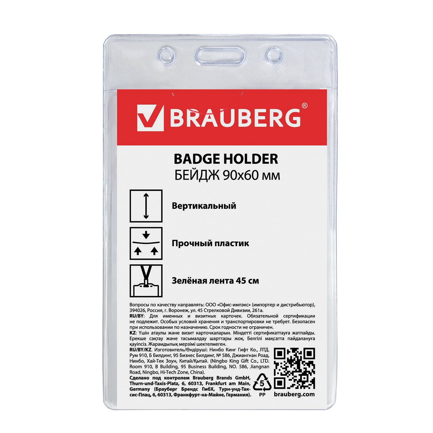 Вертикальный бейдж BRAUBERG для именной карточки предназначен для идентификации сотрудников в компаниях, а также на семинарах, тренингах, презентациях и других мероприятиях.