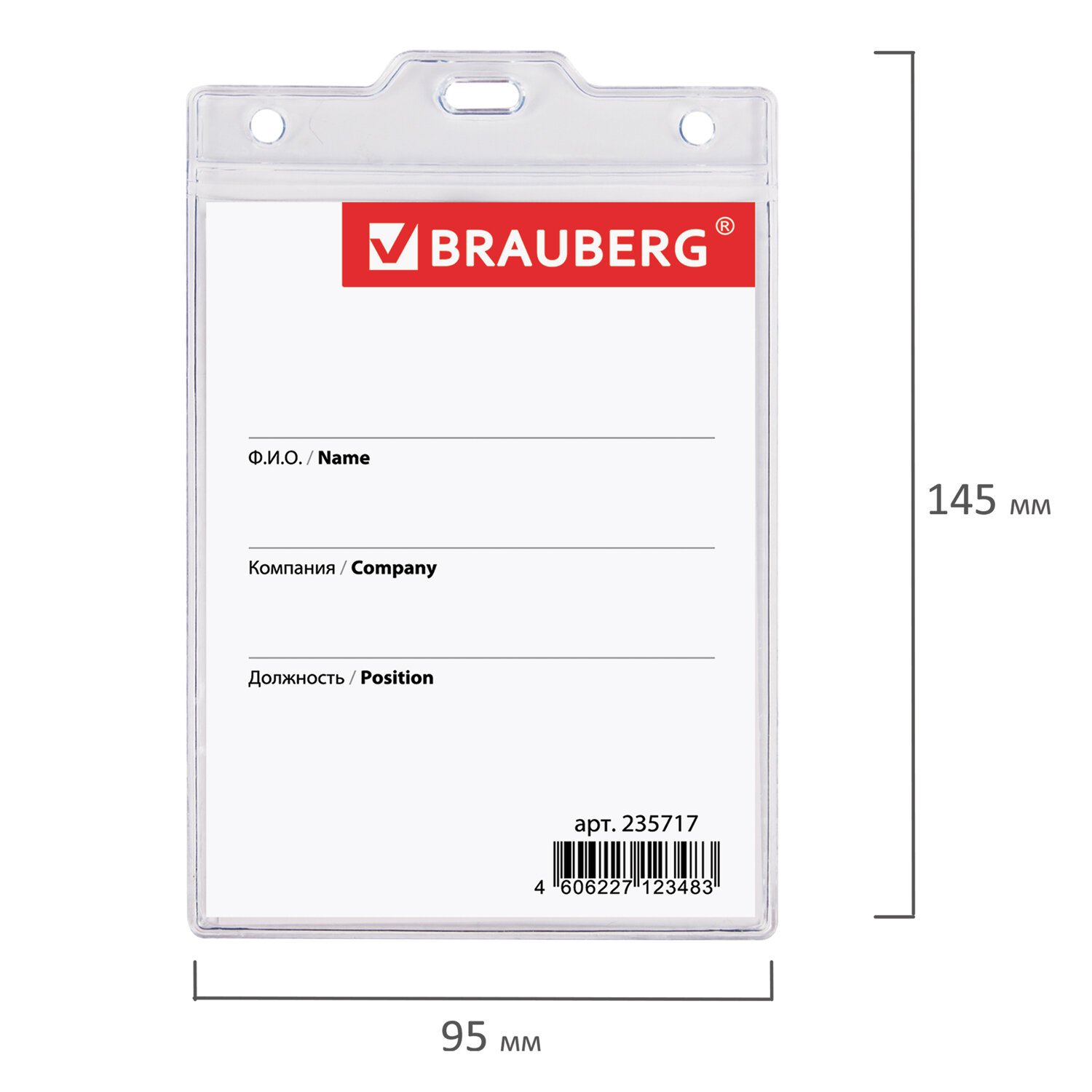Вертикальный большой бейдж BRAUBERG для именной карточки предназначен для идентификации сотрудников в компаниях, а также на семинарах, тренингах, презентациях и других мероприятиях.