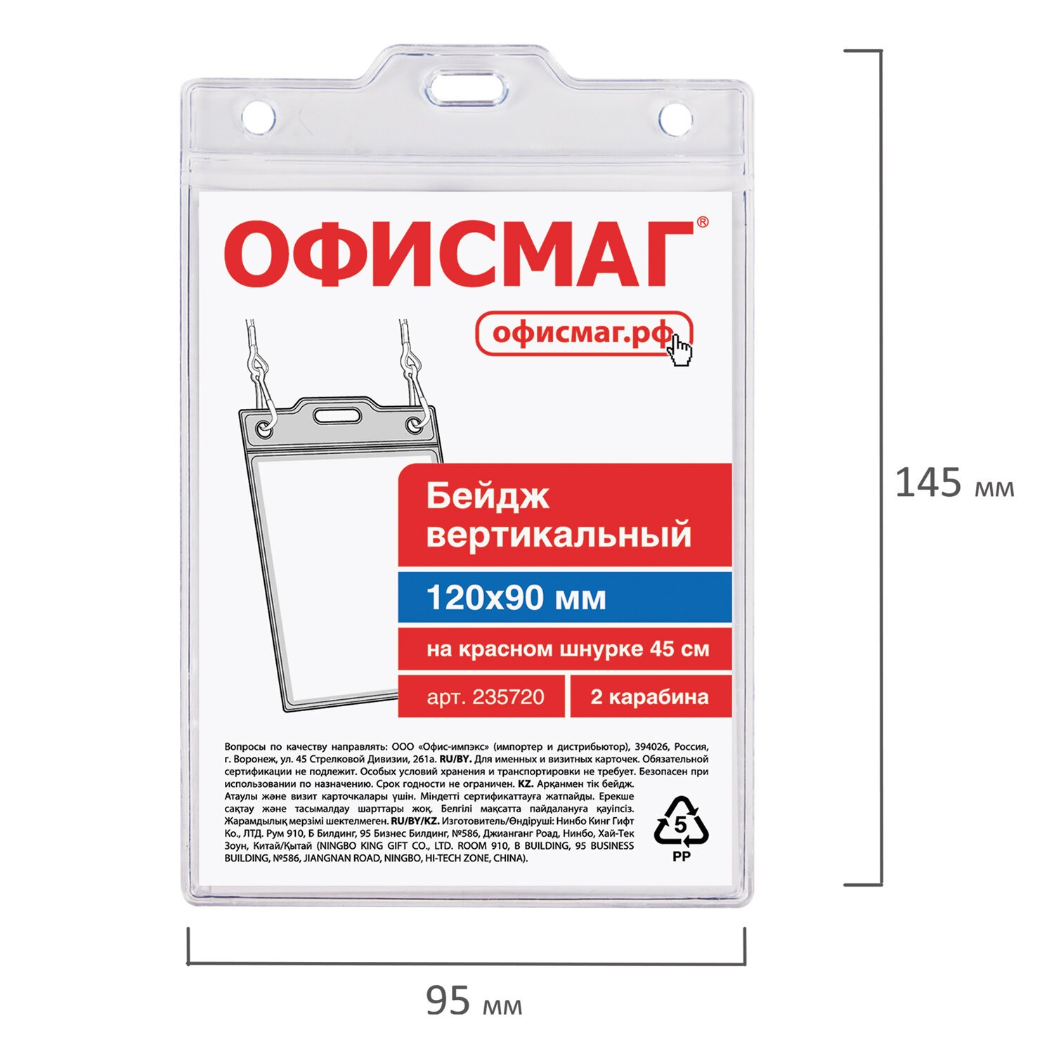| Размер бейджа (ДхШ) | 145х95 |